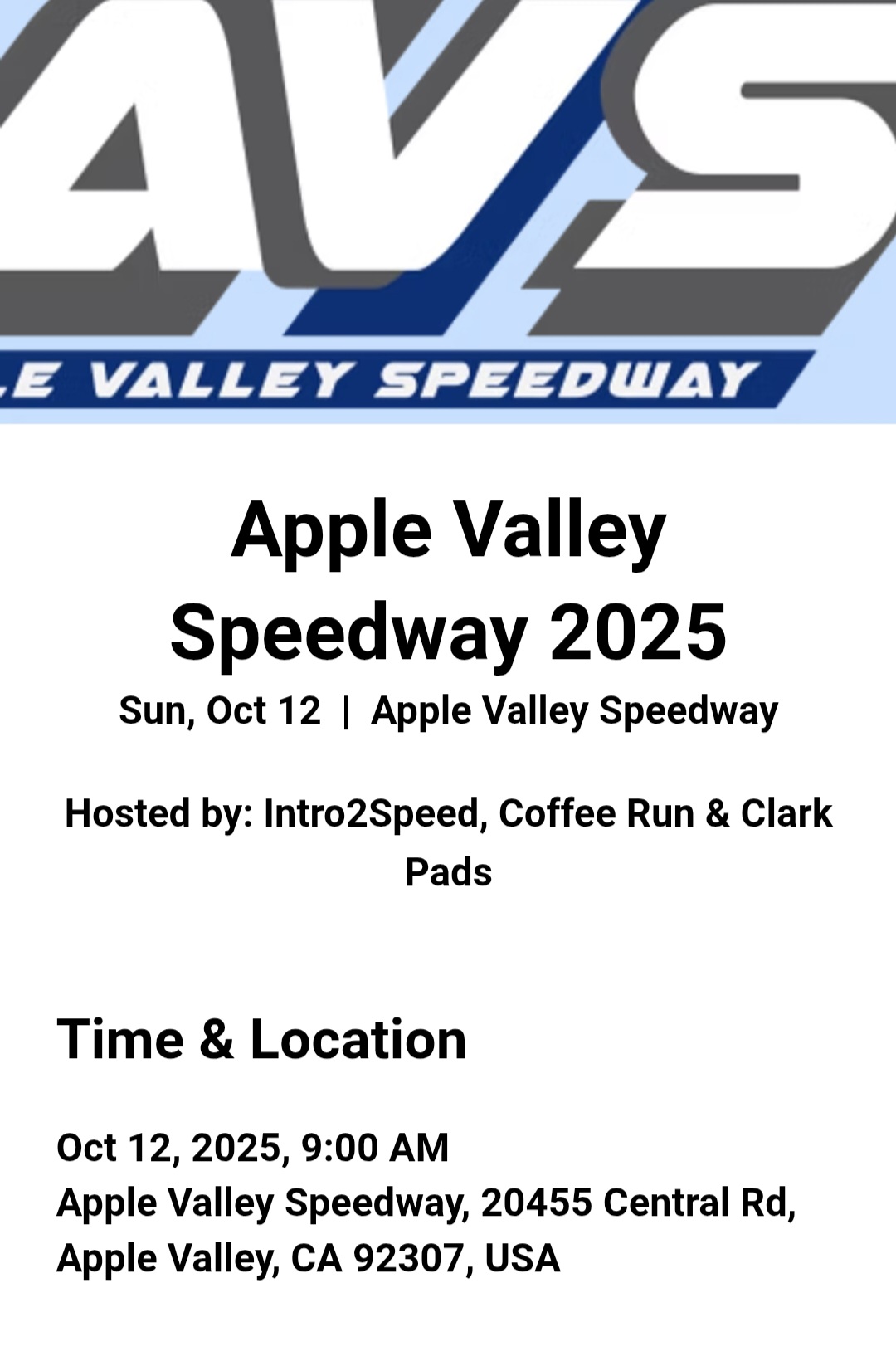 Next Spec race happening at Apple Valley Speedway 10/12/25