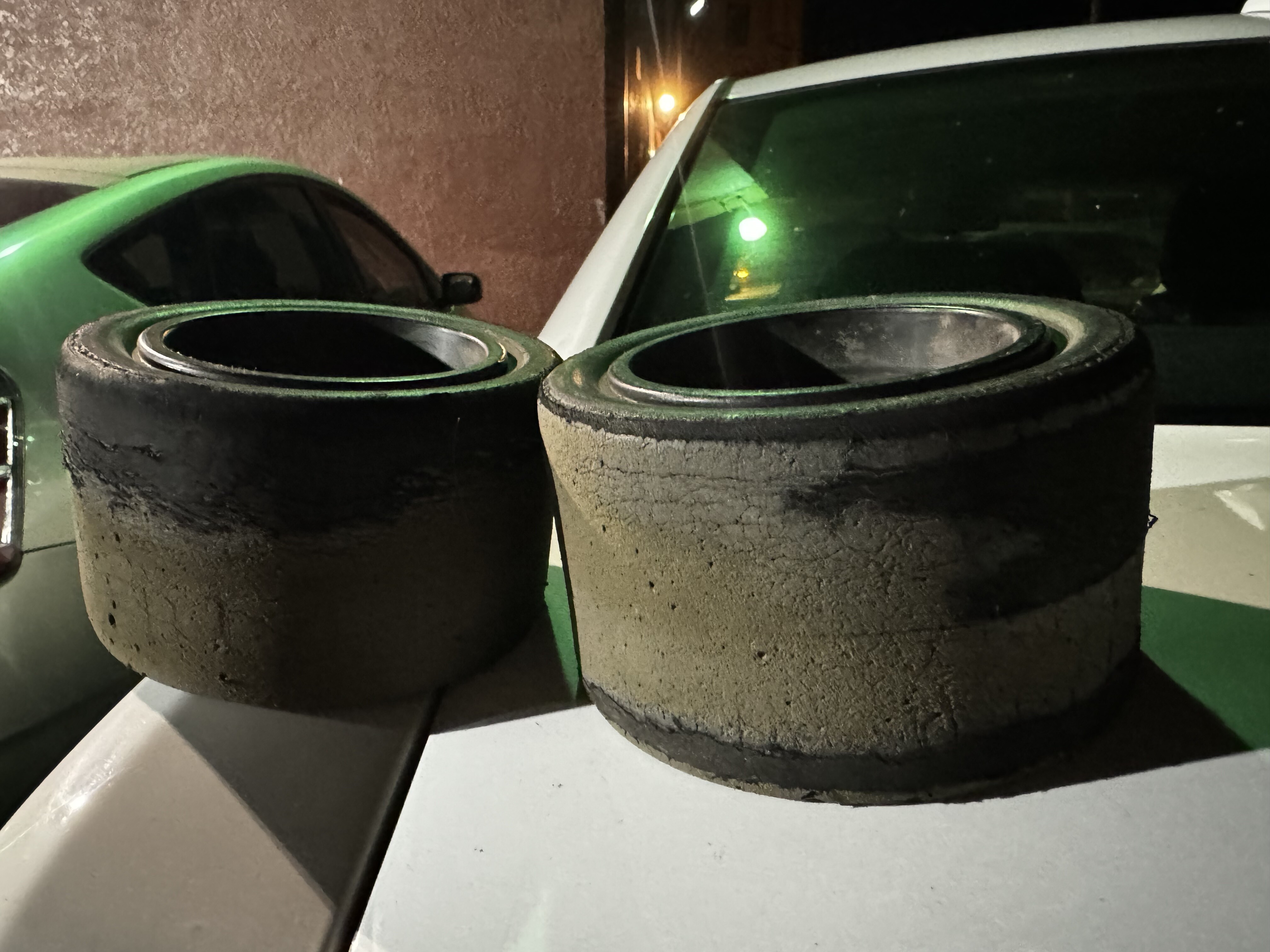 I swapped these so awesomely shredded tires to tires that had a bit more meat on them