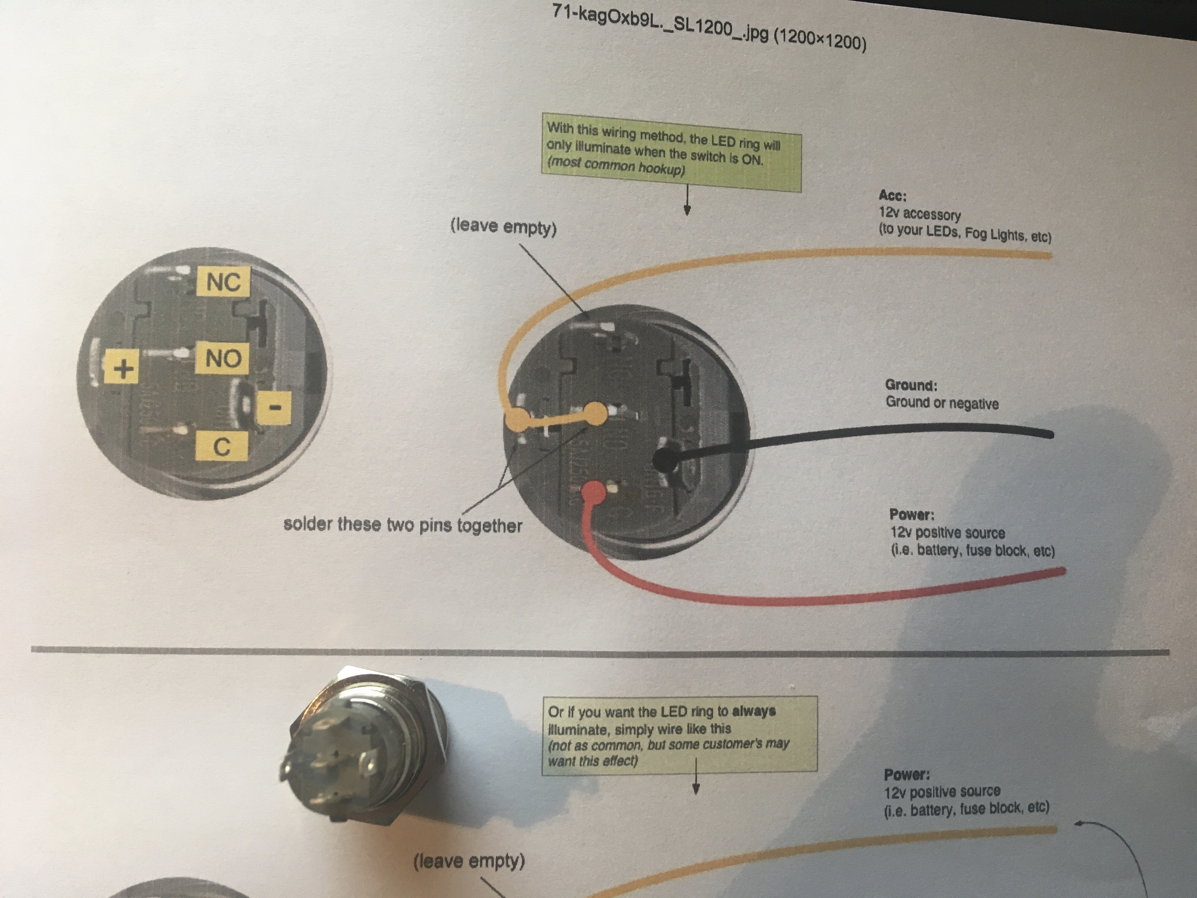 Wiring is fairly straightforward, the switch operates on the pos wire only