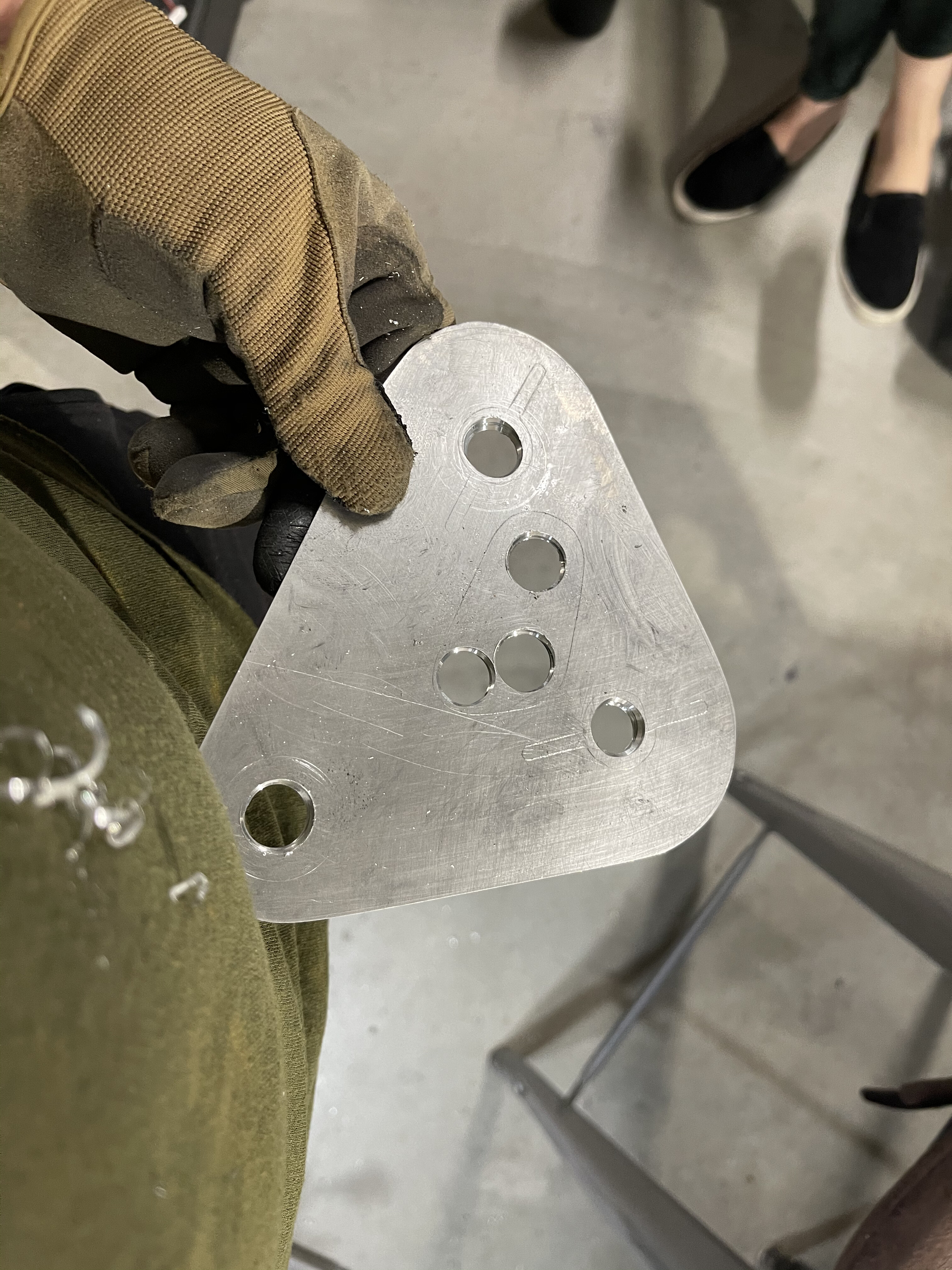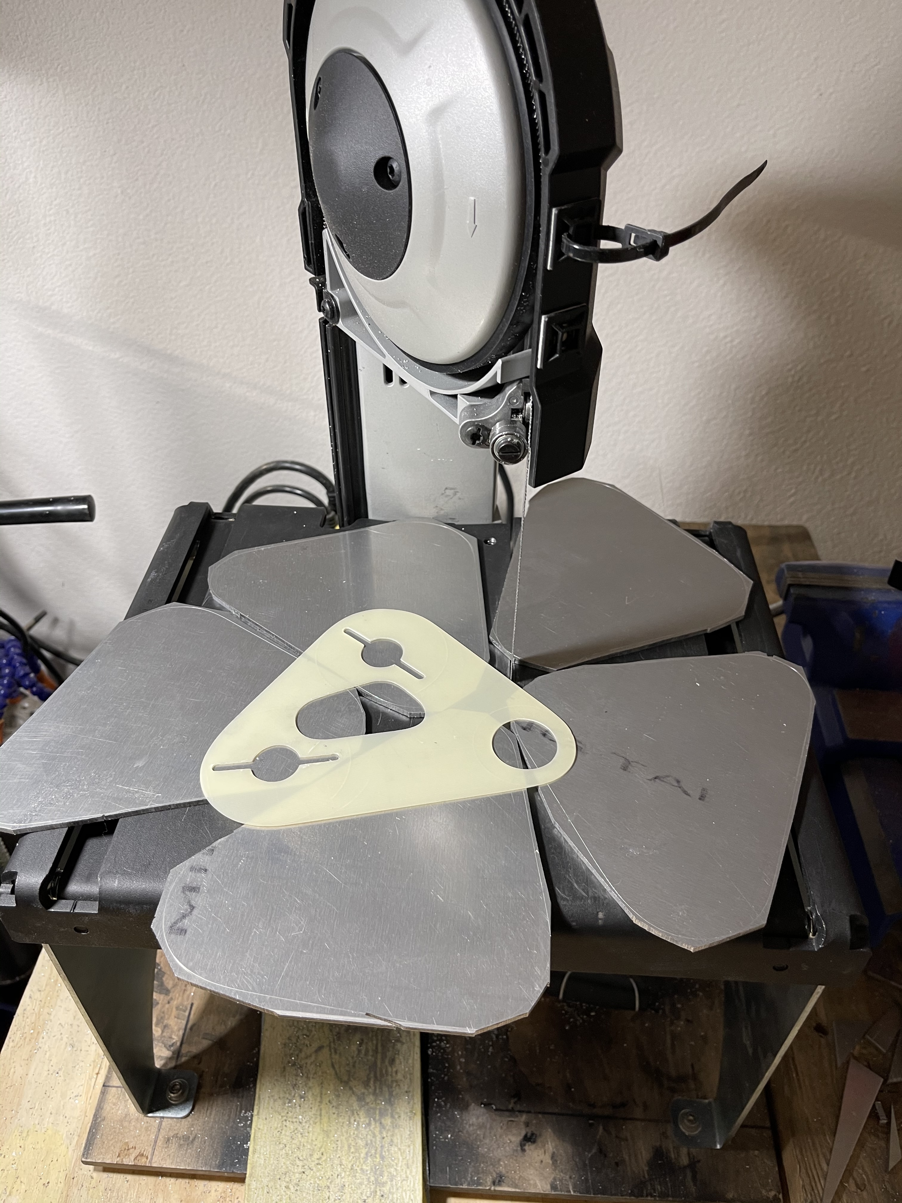 So if you want to drill the motor holes, just make the hole the size of your motor shaft, then put one of the carcasses of your motor stators on there and use that as a template