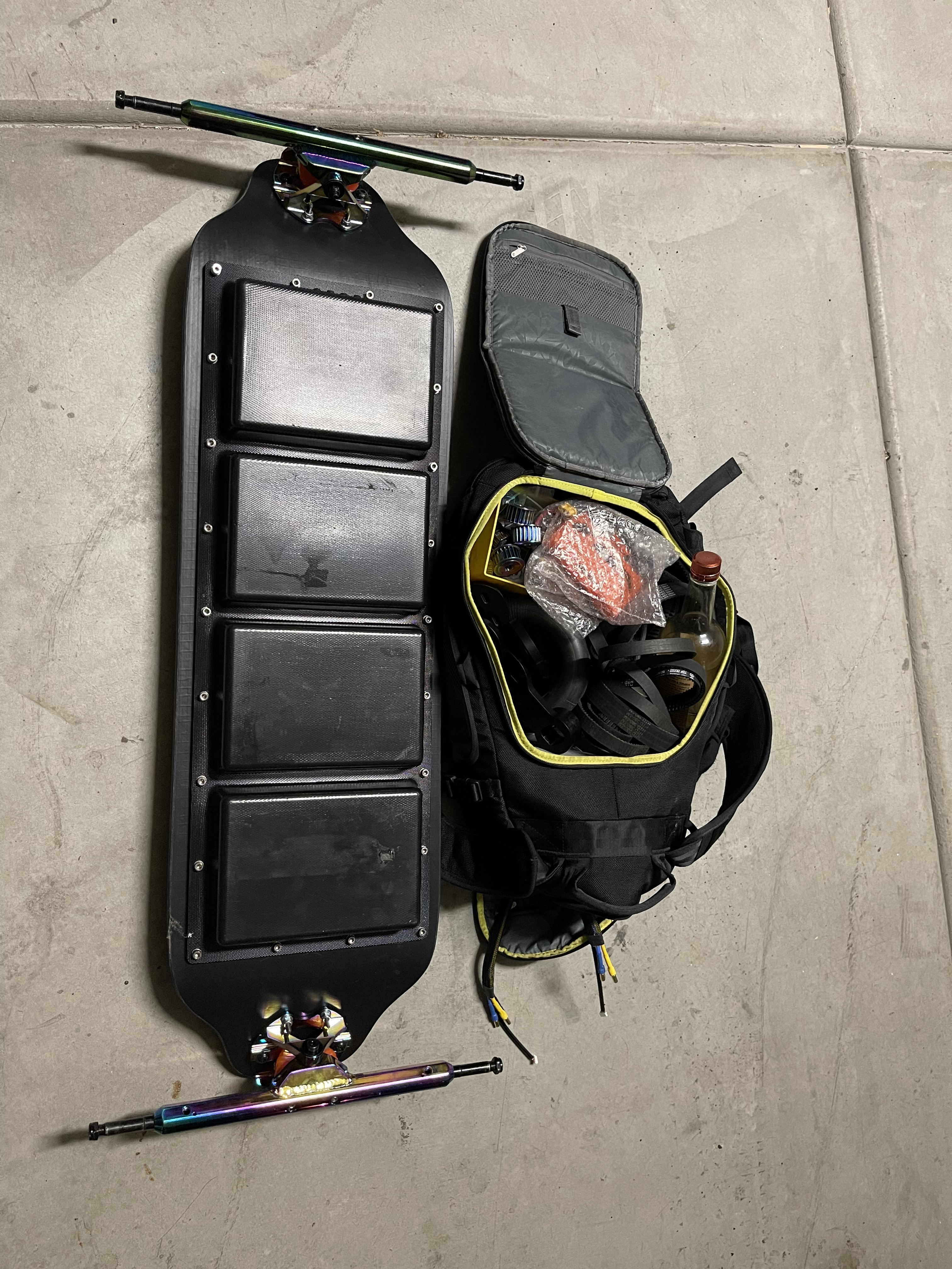 Headed to corona to see @Jansen’s binch ass tonight. Motor, tubes, escs, pulleys, boards, trucks, and mounts? Check.