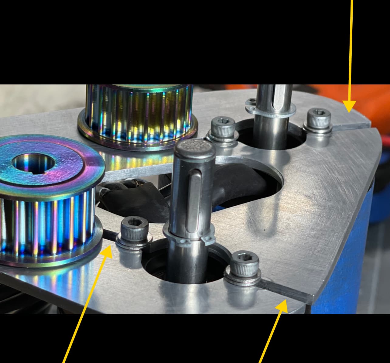 yes, but plate was 0.125 in, 6061 aluminum, there was no cross bar stabilizer, and most significantly, bc I stubbornly shaped this myself on a band saw, I just cut straight through the motor bolt pattern for ease. (Arrows)