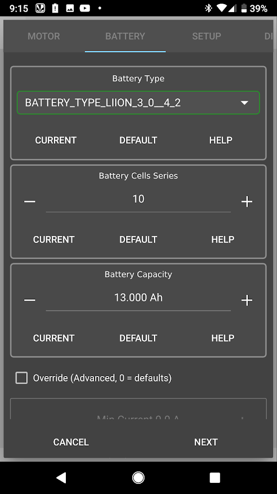 Then select number of cells in battery and the total capacity. Vesc uses this number to decide the battery ± Amps. You can change that later if you want.
