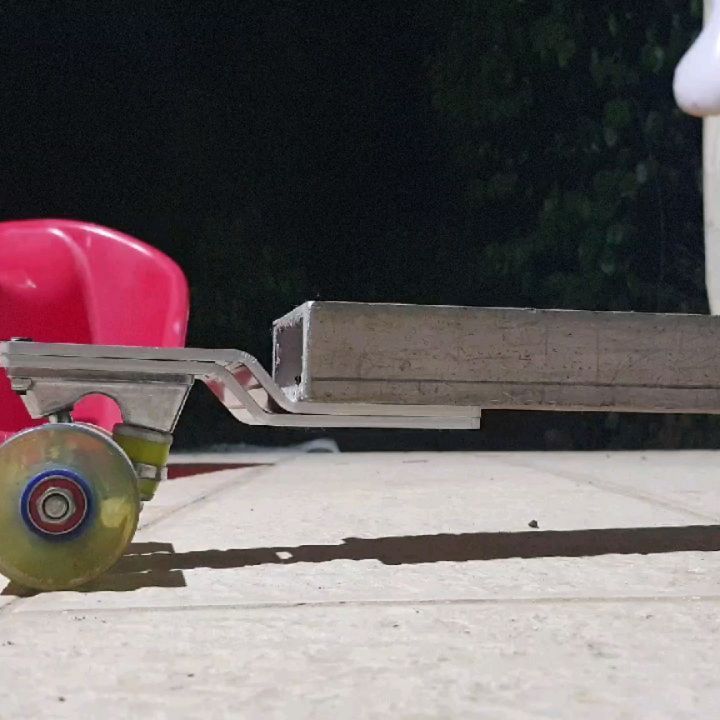Original double superimposed brackets are a neat idea to give additional strength to the concept. This is a very creative concept version of a well known longboard gadget extensively used in the hobby.