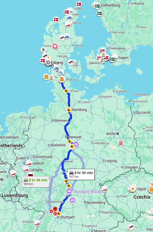 Quick stop at the supermarket for some sugar for the way back, then onto driving. I started driving from the supermarket at 8pm, arrived to biltema just after the danish border to pickup an engine crane at around 2:30pm the next day, so that’s another 16.5 hours in the car, of which I slept 2, again on the side of the highway. The handling of the car felt horrible with so much weight behind, so I was driving extra carefully and slowly. After biltema an hour and a half of extra driving to get home.