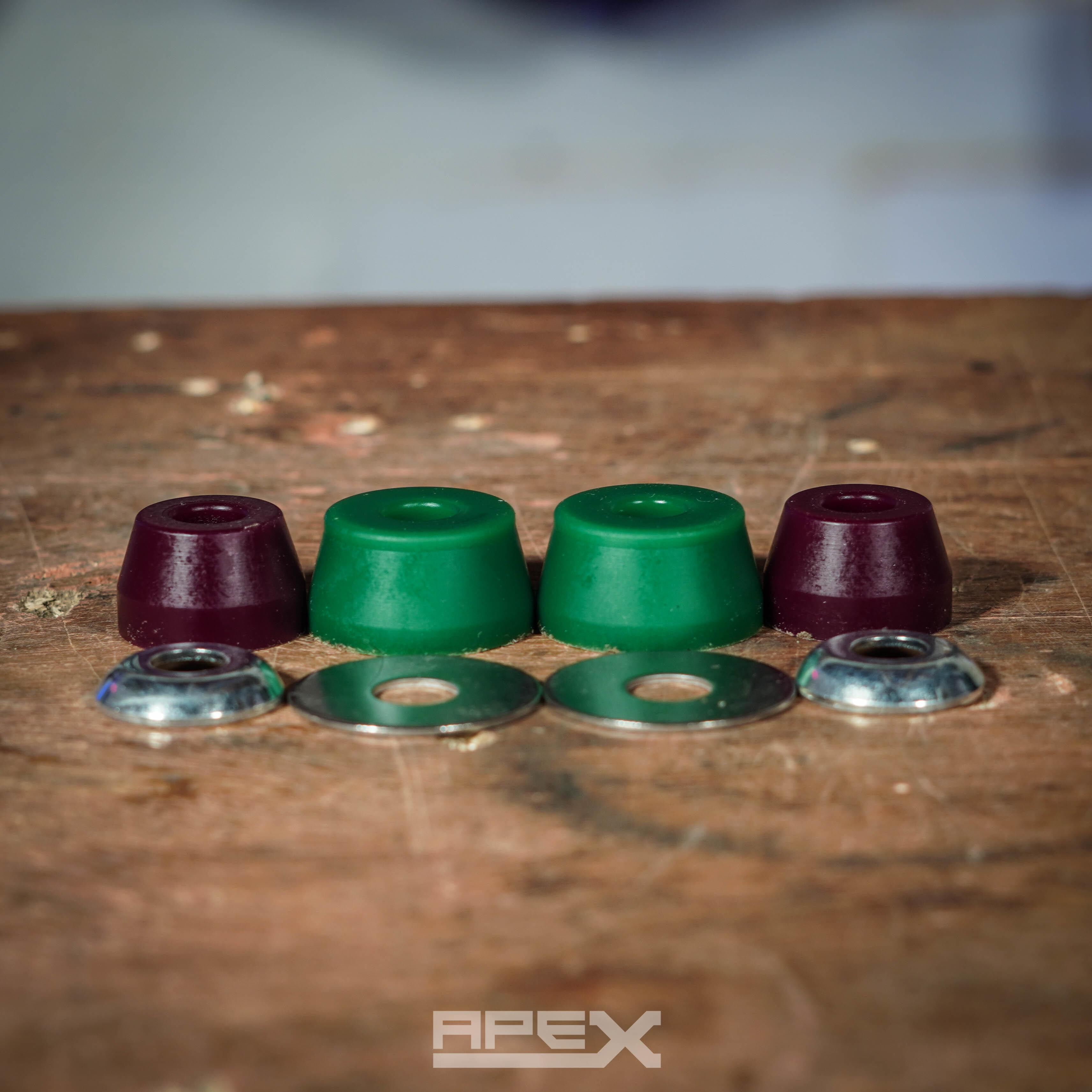 Bushings - On PKP these act as the main interface between the hanger and the rest of the truck. They control every aspect of the ride feel.