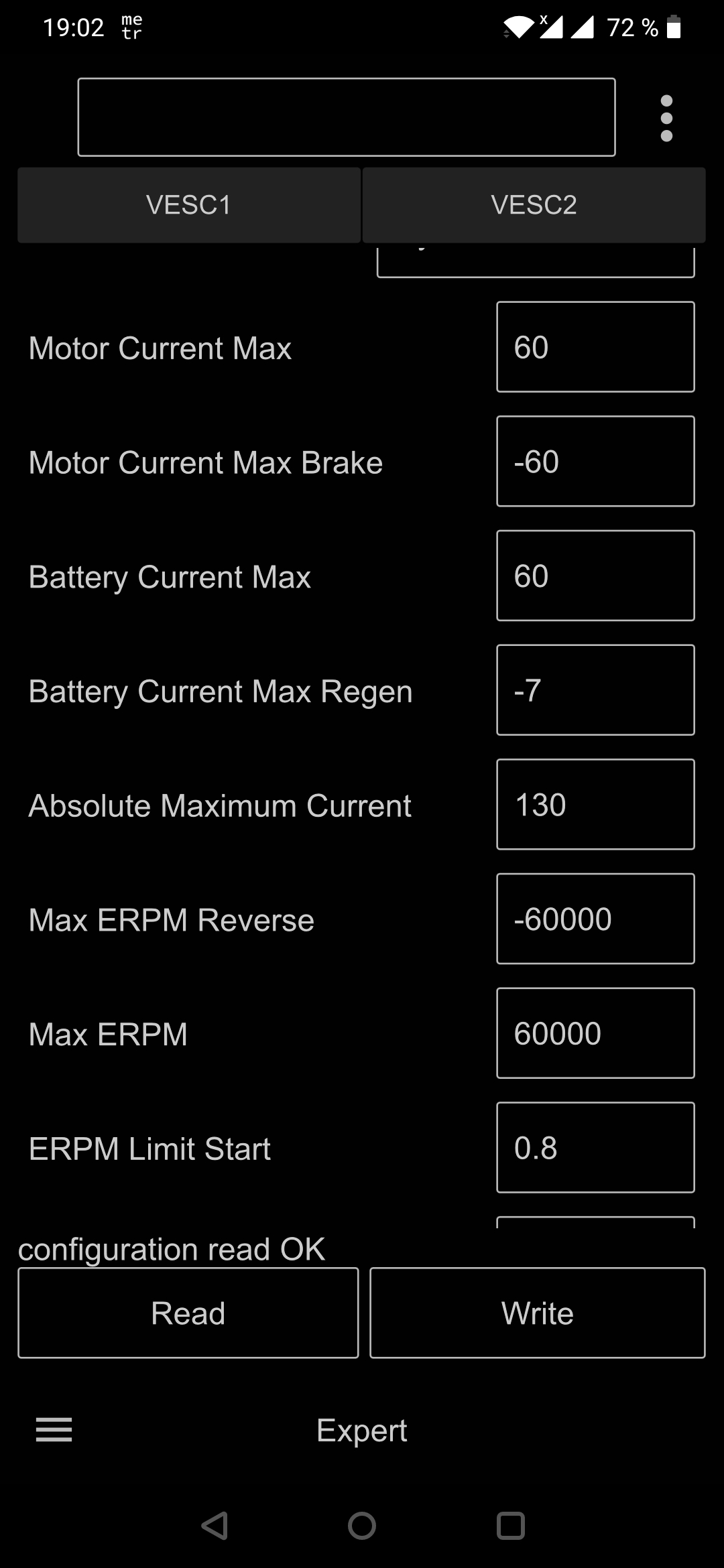 What vesc are you using? I’m using a dual vesc from esk8supplies