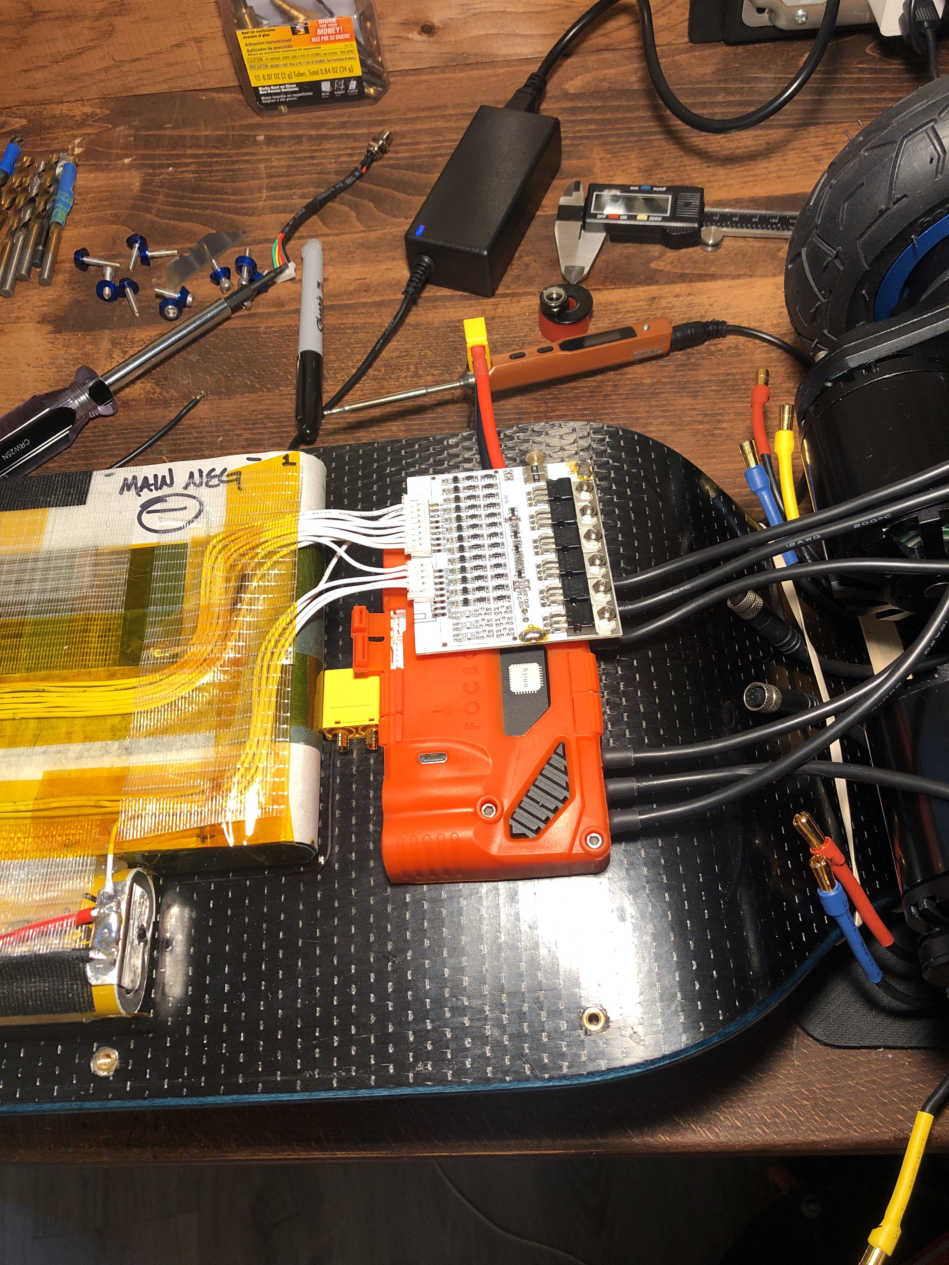 Focbox Unity running Vesc FW 5.1 with smart reverse. 12 awg motor phase wires, XT 90, METR unity module. MR60 motor phase wires.