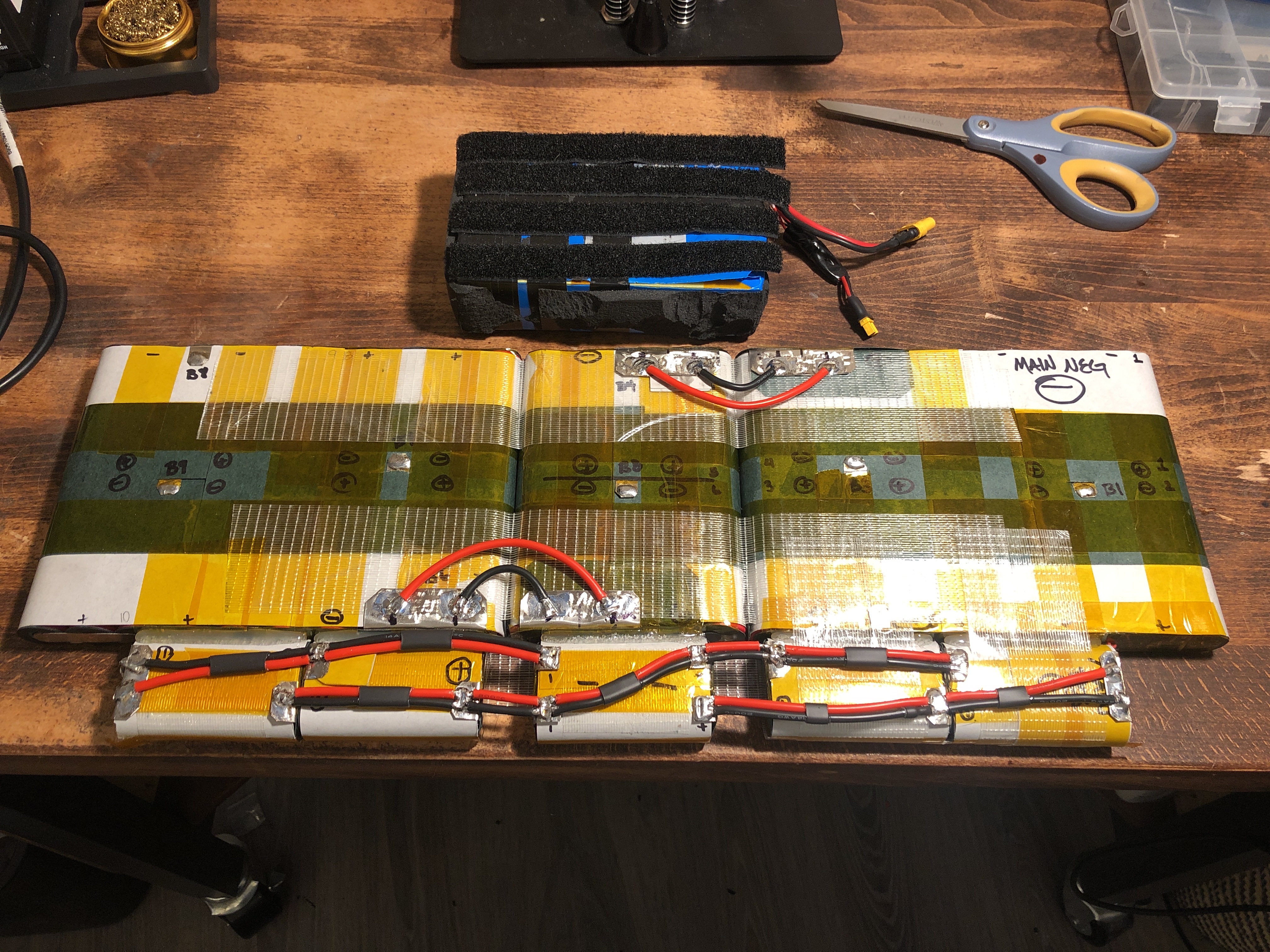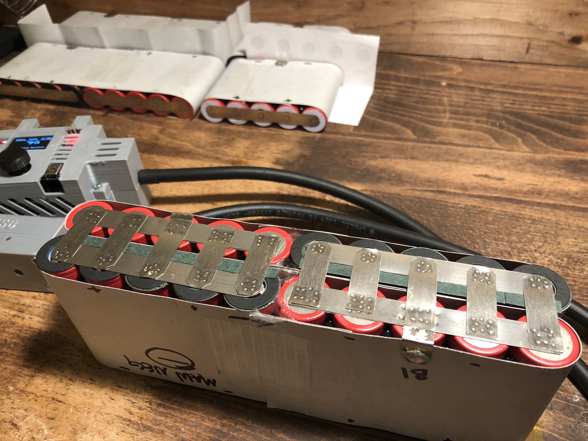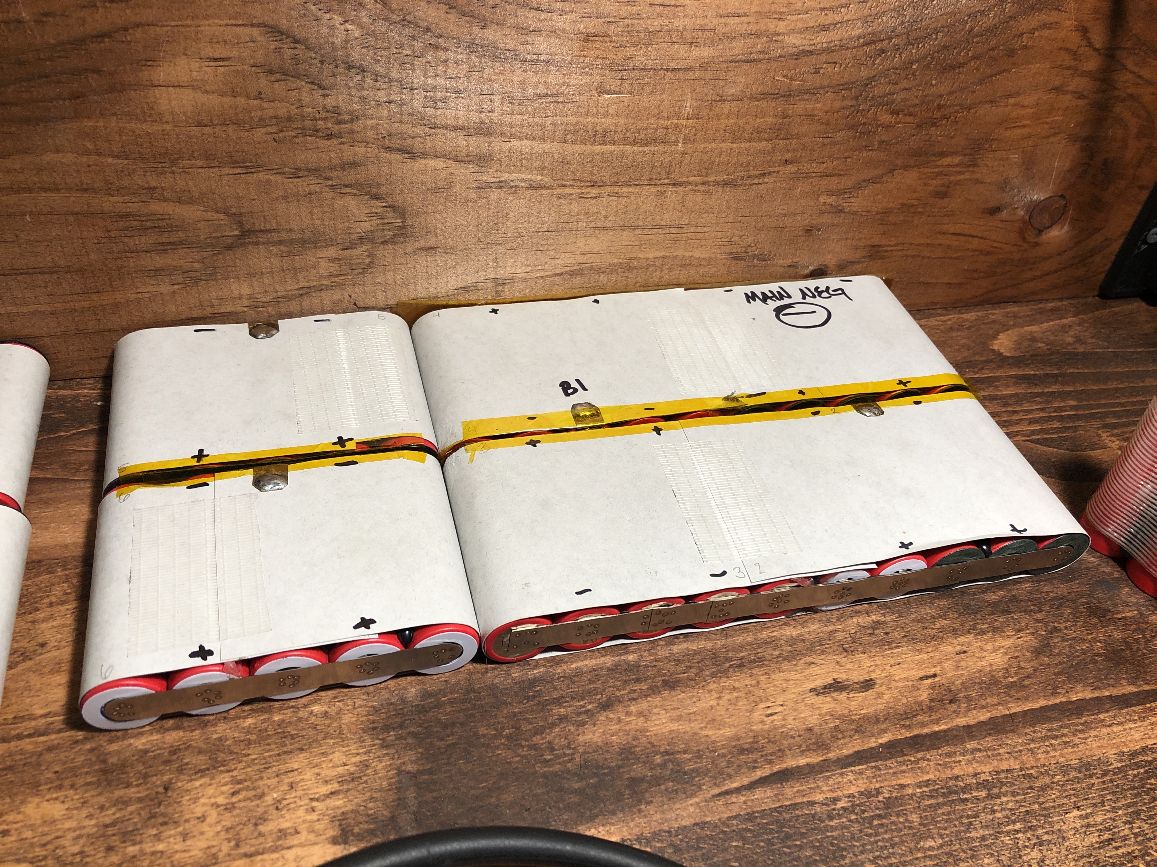 I was already planning to make the new pack flexible, but I also decided to change the configuration of the P groups. This required 5 total folded series connections, compared to 1 on the prior. It was a lot of extra work but the result came out great. Folded connections are reinforced with double fishpaper rings on the positive terminals and a strip of adhesive paper across them which makes the fishpaper layer flush with the top of the positive terminal. This virtually eliminates the possibility of those connections getting near the can of the positive cell, which is the only place they can short their. On the inside of the connection is fishpaper, kapton and 3m double sided tape. This keeps the distance between cells consistent, reducing vibrations on the folded connections. I’m not a fan of folded connections if you can’t tell