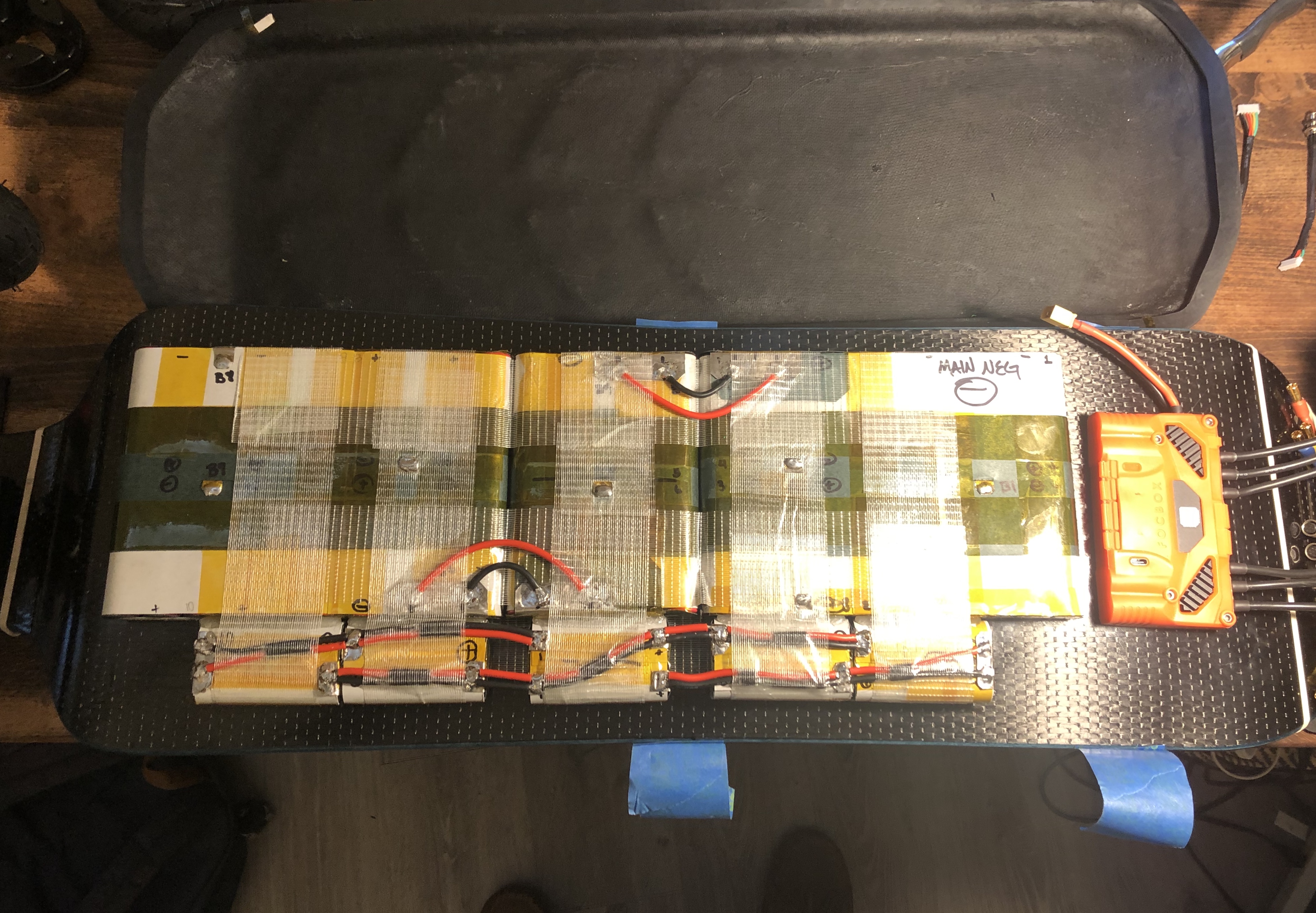 The 12S5P came to me built but the owner elected to have me rebuild it. It’s done with 0.2 x10 nickel and series connections are 5x or more. Flex connections are 2x 14awg. This deck was made in their stiffest configuration and still has quite a bit of flex, even with the enclosure installed. The pack can flex in two places to account for this.