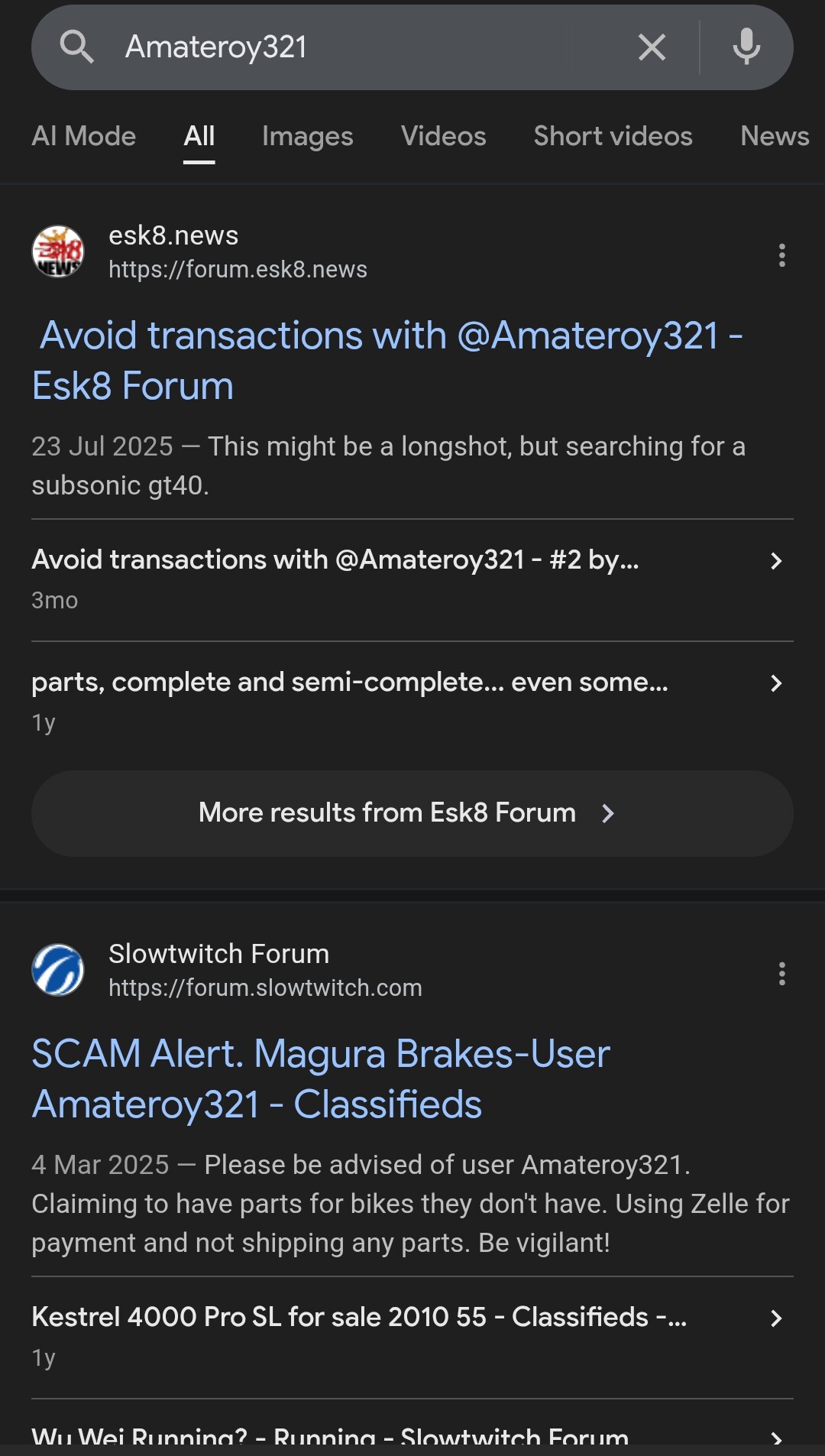 He messaged me about my WTB Subsonic GT40 post. I found out that the photos he sent me were taken from an offer up post from many years ago. He lied and said he just took them. I asked him for a photo with his username and date on a piece of paper in the photo (not hard to do and pretty standard for sellers). He said he couldn’t. I presented the source of the stolen photos and he had nothing to say.