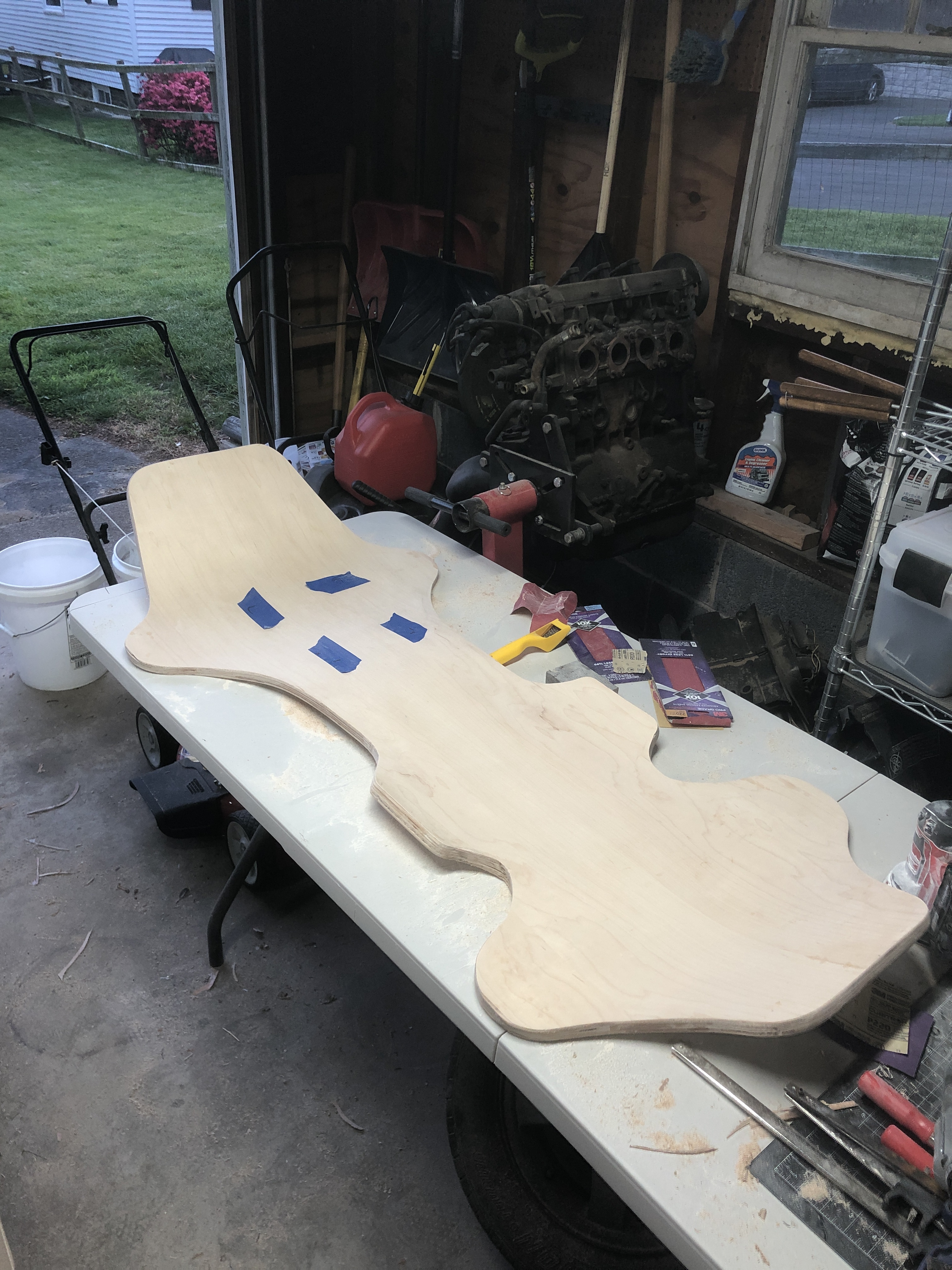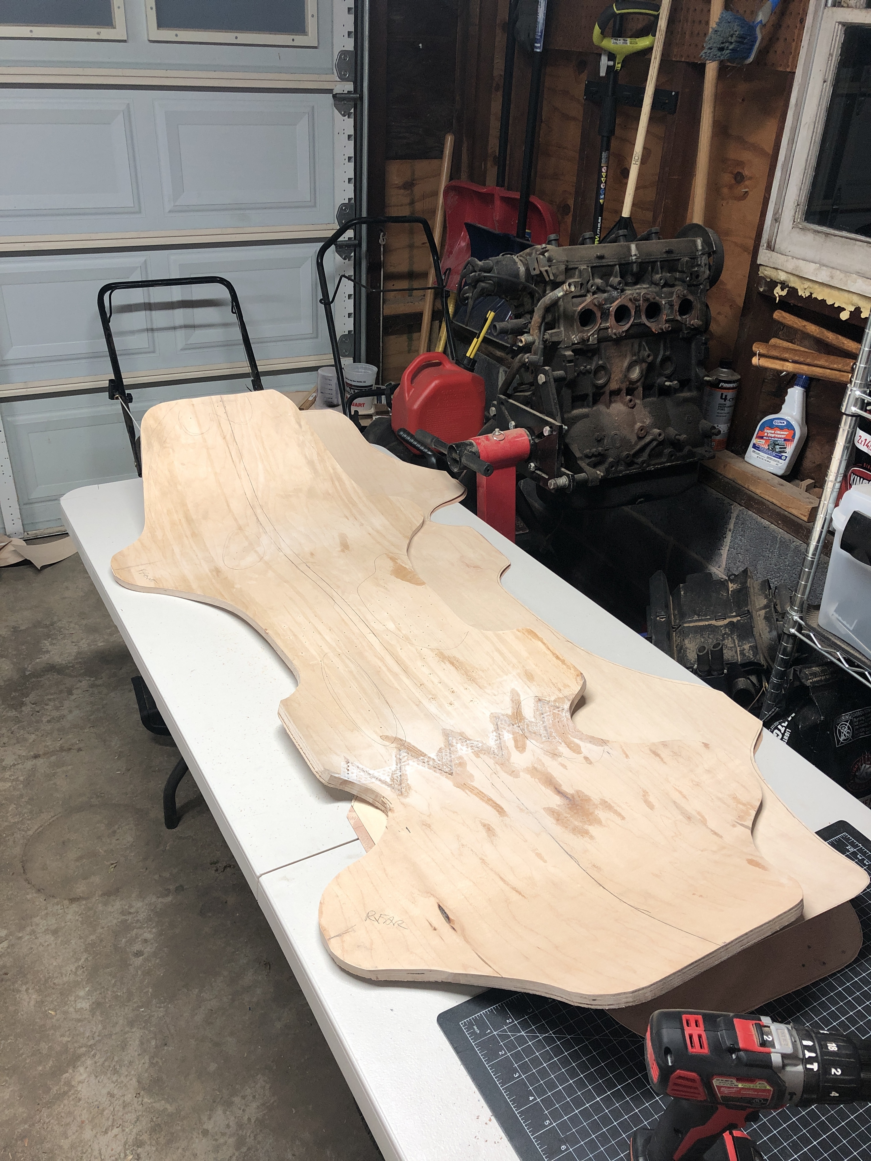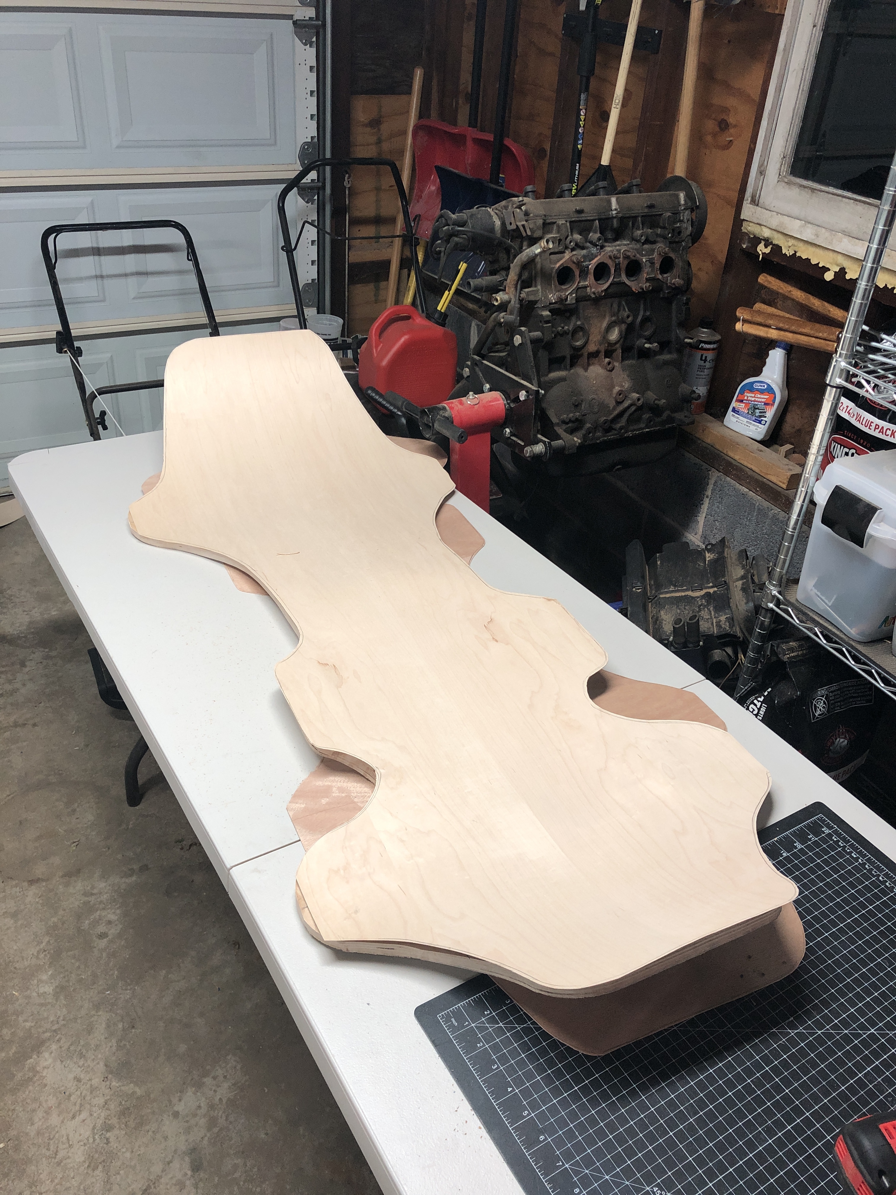 Tomorrow I will trace out the shape and cut out the rough shape, prior to sanding the top and bottom smooth and rough cutting the 8’ face plies of Maple I have for the top and bottom to cover up the zig zag joints I had to do. Basically fix it to look right and cover up all the ugly.