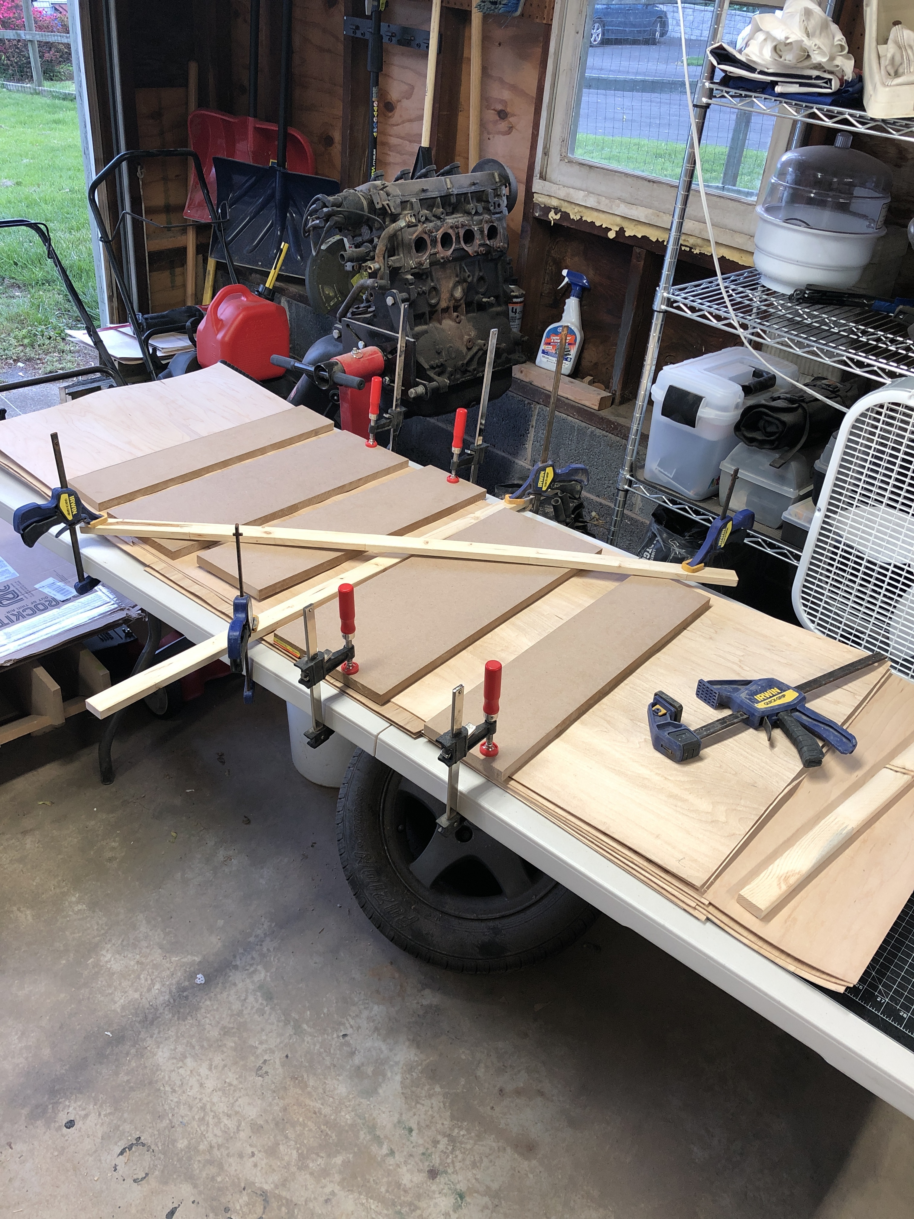 Deck is going to be 9 plies (6 long grain plies and 3 cross grain) and then top and bottom will get a beauty veneer to hide the zig zag butt joints of the long grain plies.