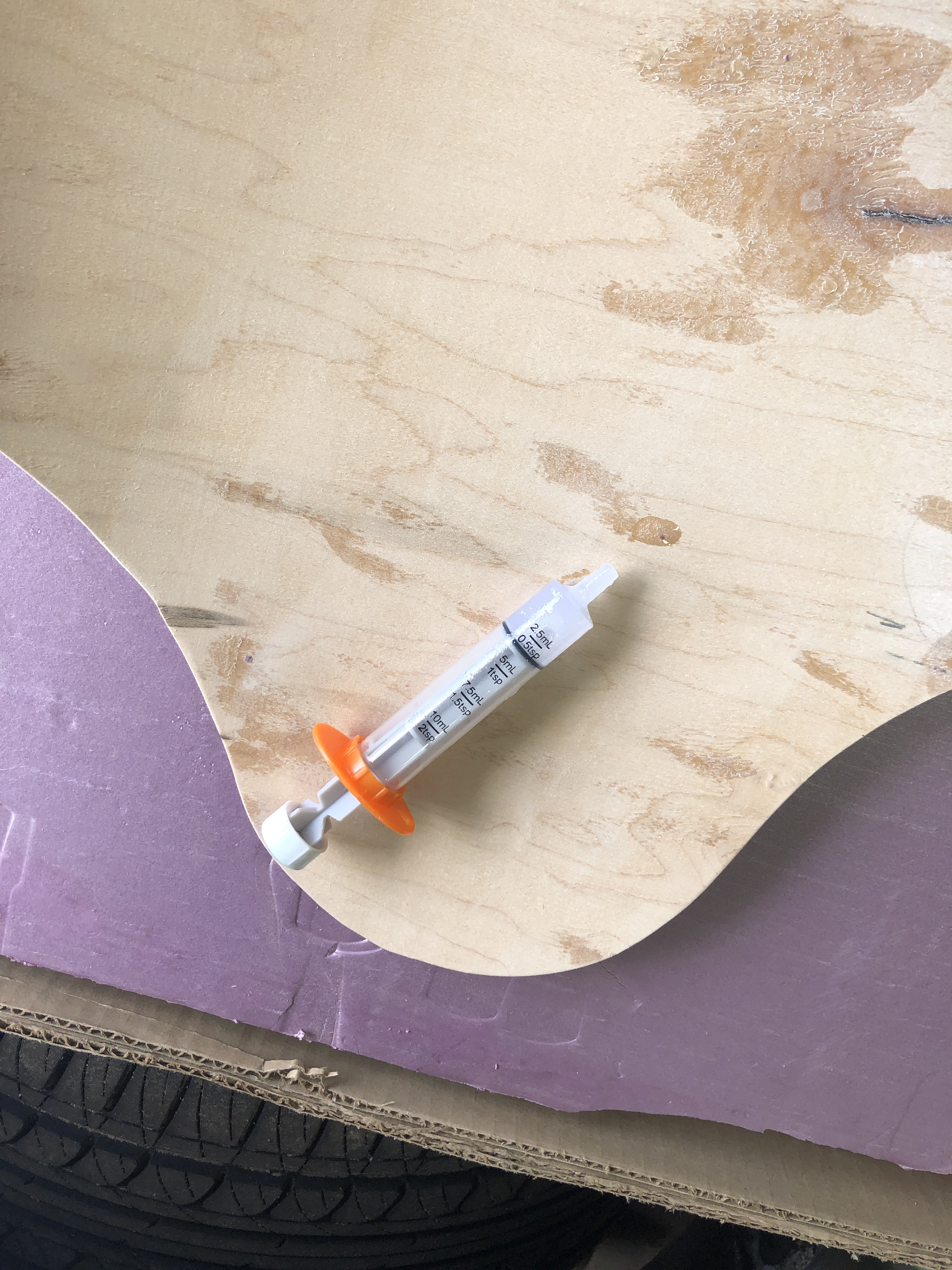Baby medicine syringe to fill the gaps within the deck then applied the beauty layers.