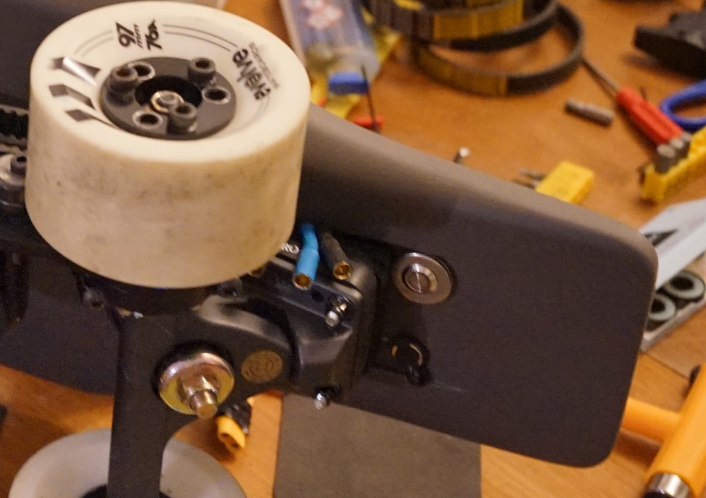 I ordered it online; but it’s the exact same one that comes with the Flipsky pro smart enhanced magical whatever the one that actually works anti-spark switch. As you can see, it’s still too tall, so I had to use some washers.