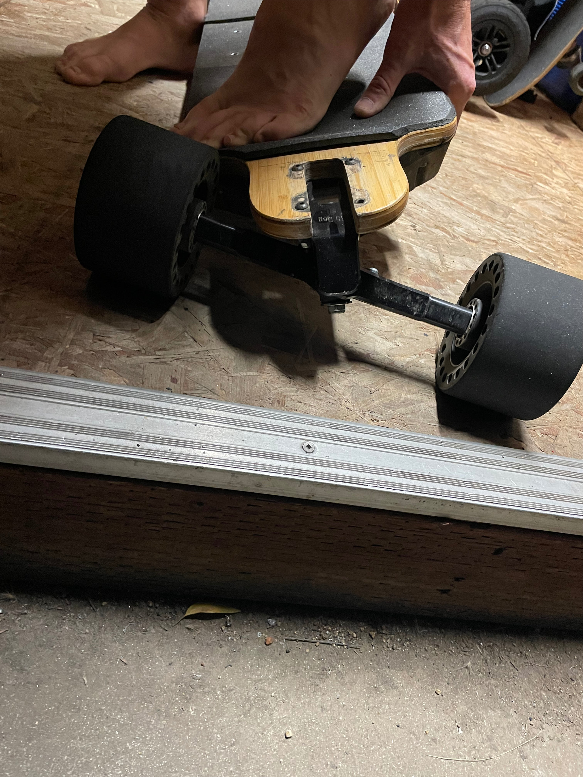 Goals for the build is low/medium power carve/ sliding board. Looking for as lightweight build as possible trying to save weight where possible. Stock configuration is 38lbs. Currently, on stock electronics I have to baby the Zeus if I throttle too hard it throws an over current fault where you have to come to complete stop for fault to clear. It’s got a bit of that lack luster feeling currently where a bit more power would be real nice coming out of a slide.