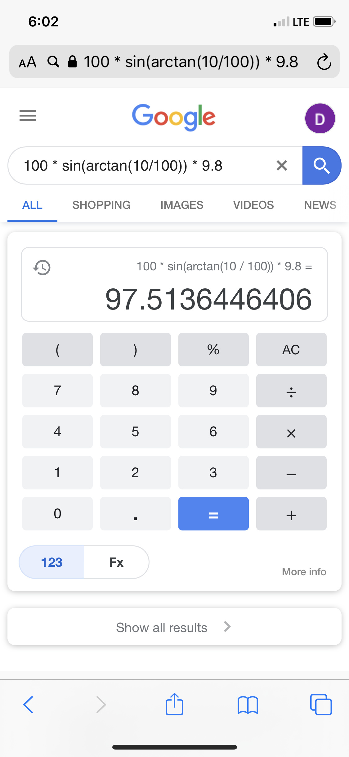 force_newtons = mass_kg * sin(arctan(rise/run)) * acceleration_gravity_meters_per_second_squared