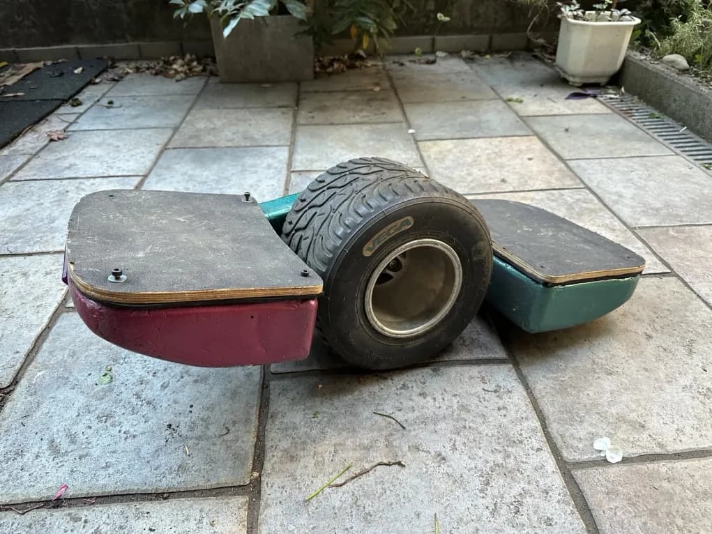 I have a set of XR rails, a giant 12mm bolt that could serve as the axle, and now the wheel assembly. So next would be plan out the motor mounting and how the belt or chain fit within the frame.