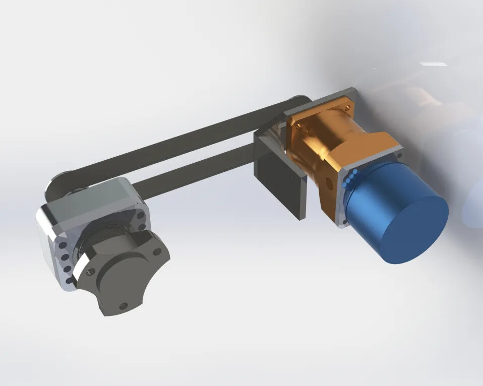 Something expensive and inefficient like spiral bevel gears could also be used, to get around some of the packaging problems with normal belt/gear/chains