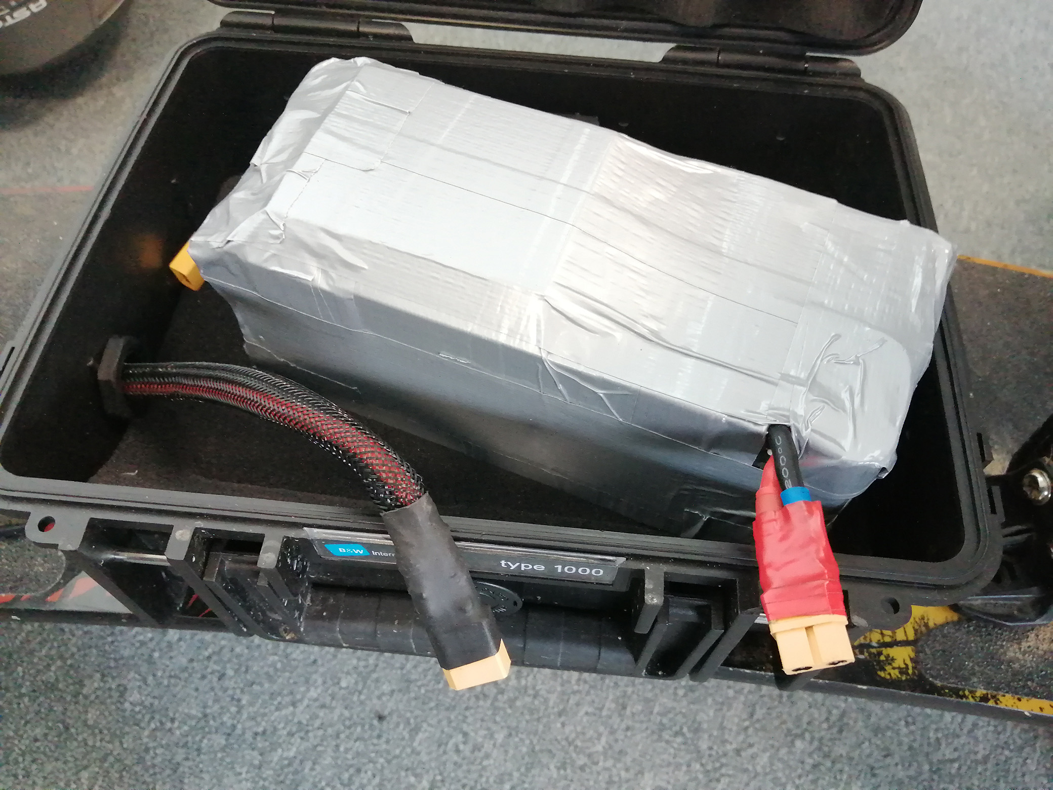 A friend found a 10S4P bike li-ion battery pack made of LG 18650 MH1, so 12800 mAh. I didn’t asked where it came from and it was already perfectly balanced (insert Thanos meme here).