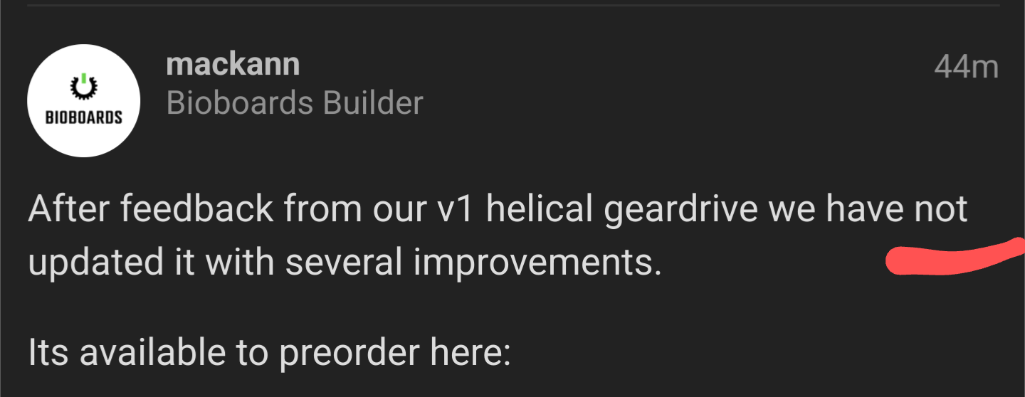 Why is it more expensive then v1? A: The new herringbone gears (or dual helical if you prefer to call it because of the small space in middle) cost a lot more to make and very few factories even said they would try with a small gear like this with this design and low quanties. But still its not more expensive then other premium geardrives that dont have this gear, so i think for what it is its not expensive.
