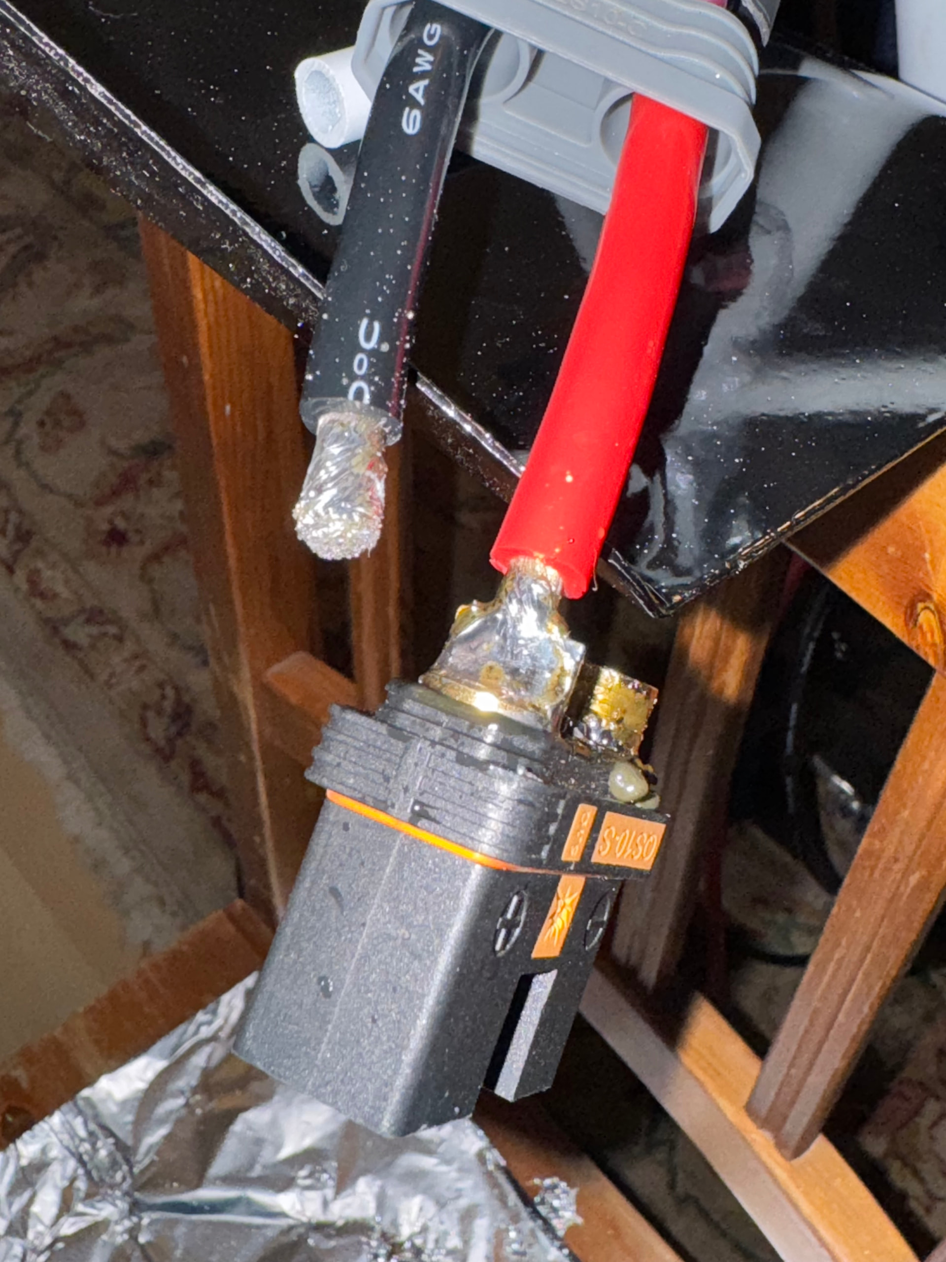 It was reading 21.2 volts, 2.73 amps. 58 watts maximum while heating towards 400C. I was noticing it taking far longer to do its thing on an XT60 and 12 AWG. I thought the USB meter was dropping too much wattage across it and tried again without it, with same lack of Gusto.