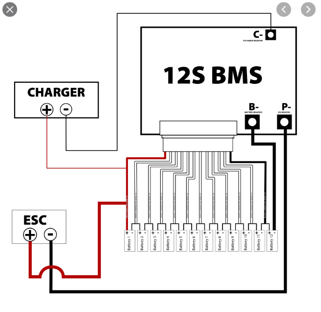 - Use 12s bms and add wires to other side of the board for charging and balancing.