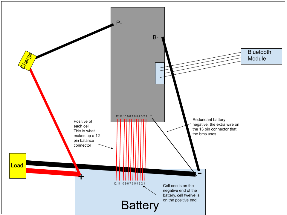 If you battery has 12 balance wires, you will need to wire in that redundant negative that I mentioned. If you battery already has 13 balance wires, just pair them up to the BMS connector and your good to go.
