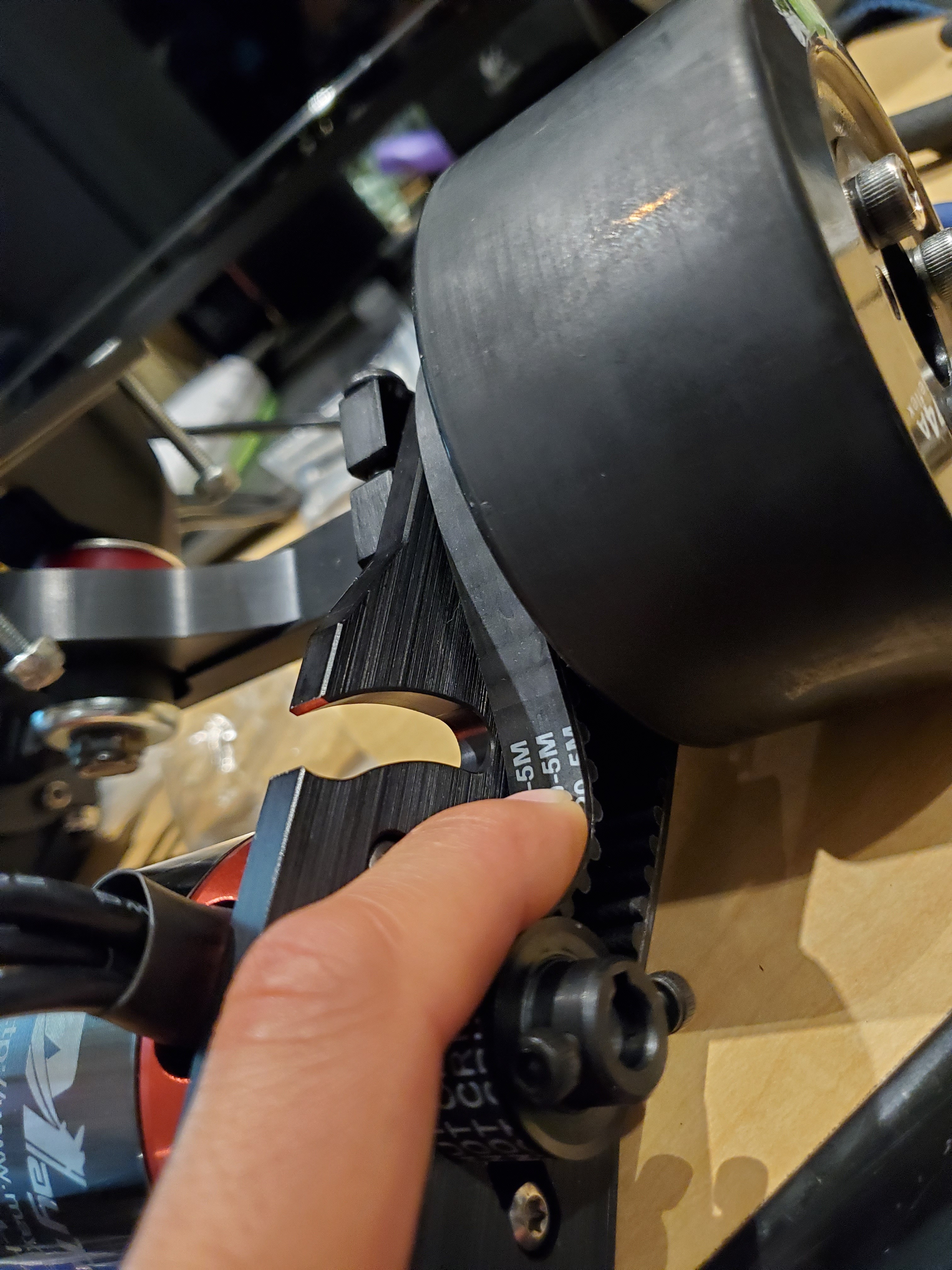 Pressing to right tension without the idler on - clear in this shot that the belt seems to be too long