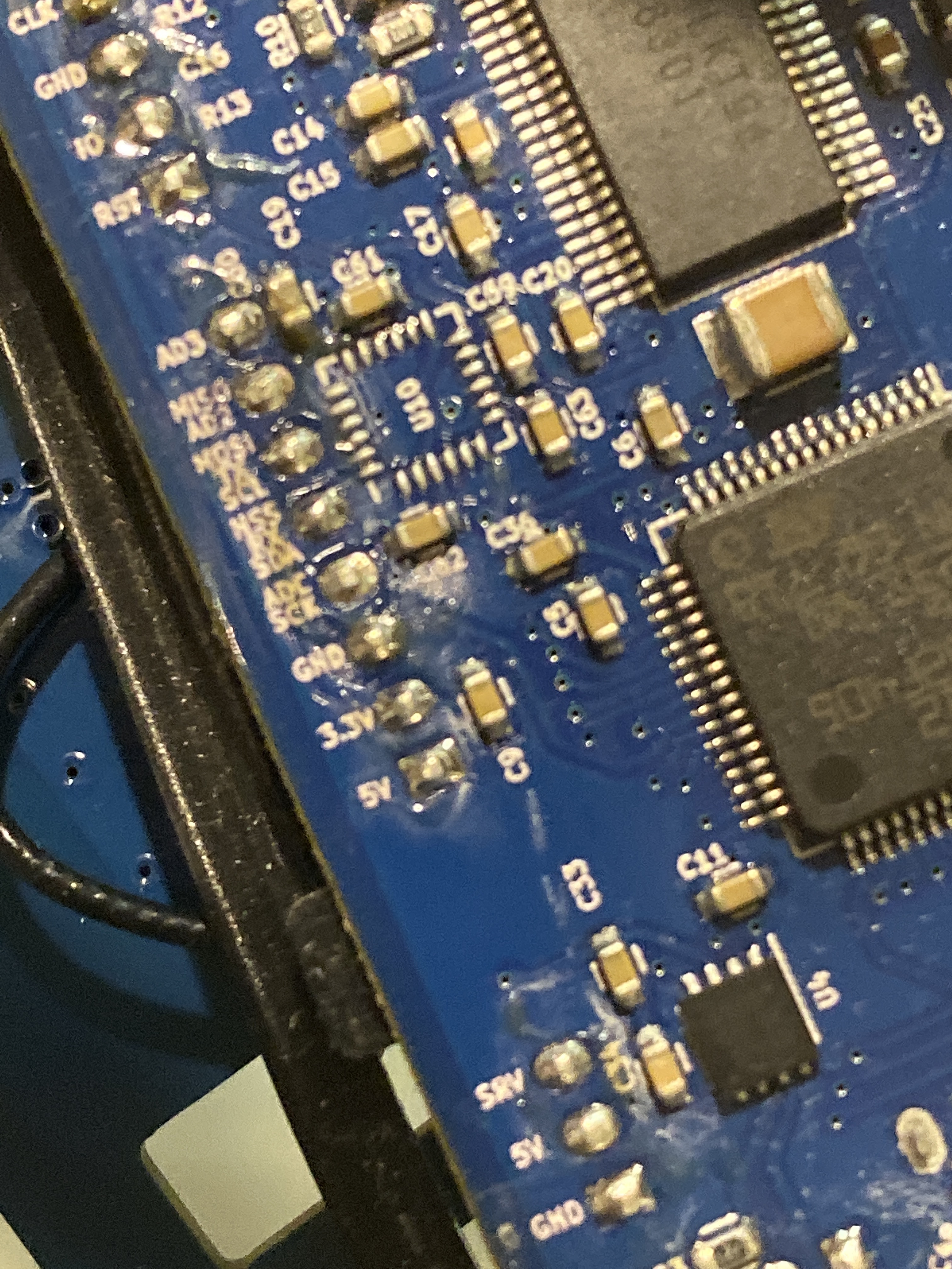 You don’t need to power up the board, just put the Multi-meter in diode check mode (or resistance) and put the Black lead on the GND and the red on 3,3V , you should ear a beep or the resistance should show 0ohm.