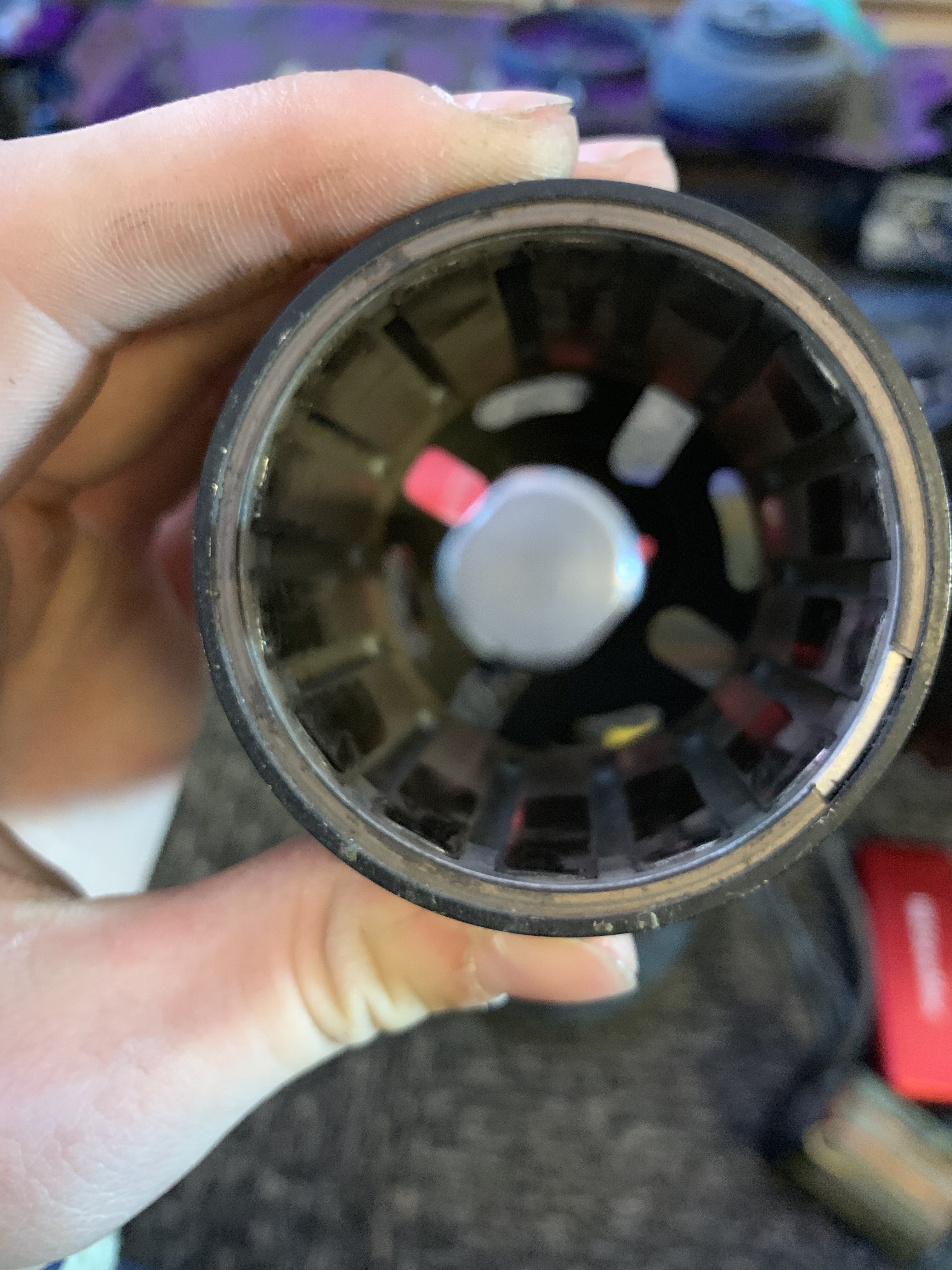 For the past week, the clicking sound has returned on one of the motors. Earlier today, it became more of a grinding with the motor seizing occasionally. I took it apart with @anorak234 and found a big chunk out of the rim of one of the cans. Everything else looks relatively OK.