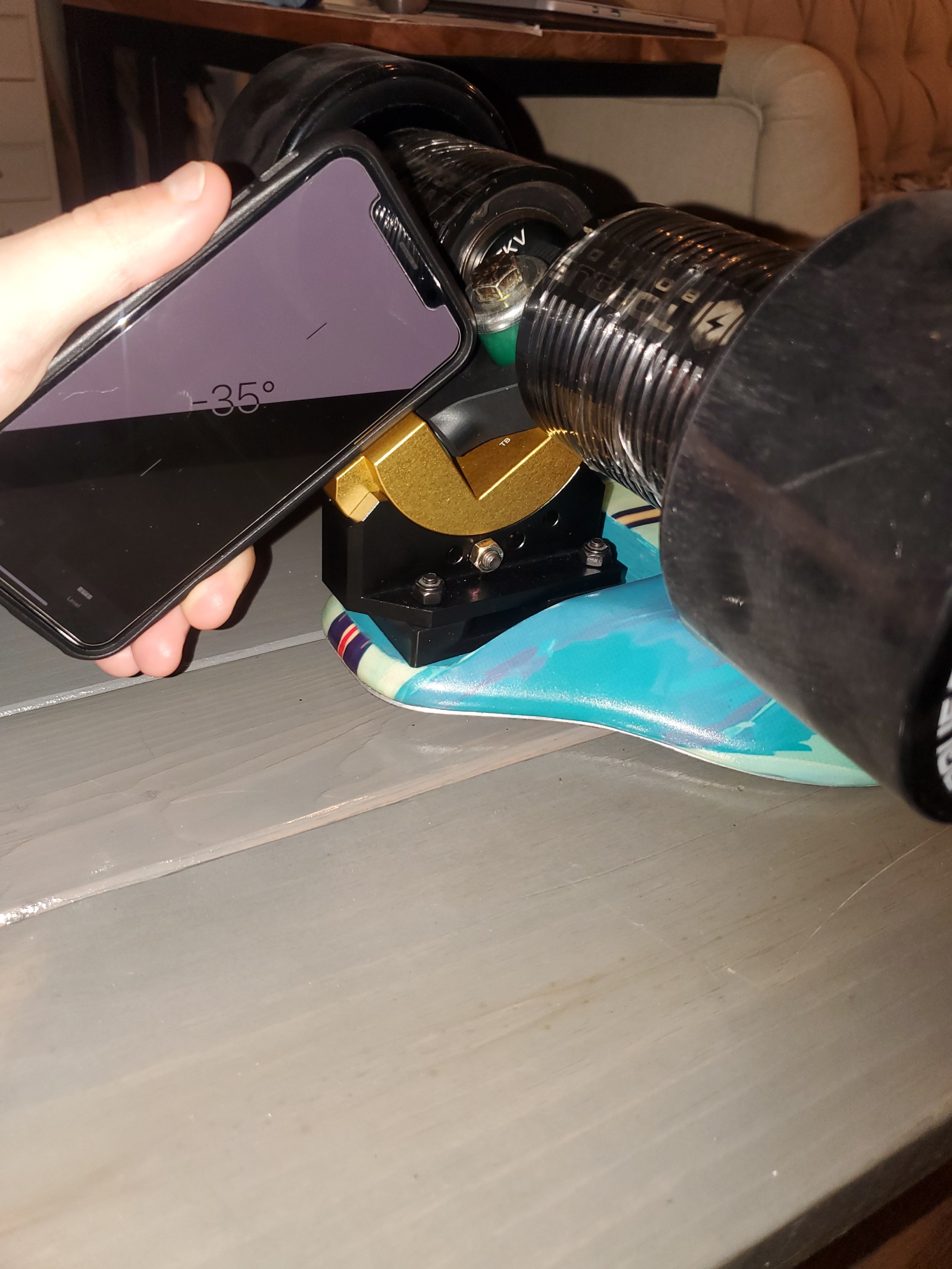 So my problem was the kingpins. I was using the ones that came with the TB DD hangars at 2.5 inches and the way the adjustable plates seat the king pin it wasn’t allowing me to tighten them down. Went to my hardware store and grabbed some at 2 inches and now I can torque down on the bushings properly. I’m now running cupped washers on front and back with 50 degrees up front and 35 in the back. Also went with two 93A in back and two 90A in front. The rear wheels still get pretty close to wheelbite but I literally have to lean hard enough to pull a front wheel off the ground for it to touch and it still seems just shy so I don’t think it’ll be an issue in normal riding but I’ll keep an eye on it to see if I need to add the slightest bit more height. All in all I feel a lot better about the ride now and feel confident in putting some power to it now. The setup is slightly more gummy than I’m used to but it’s to be expected since I’m used to drop through with 75mm wheels. Thanks for all your help Brad! I’m ready to get this monster moving