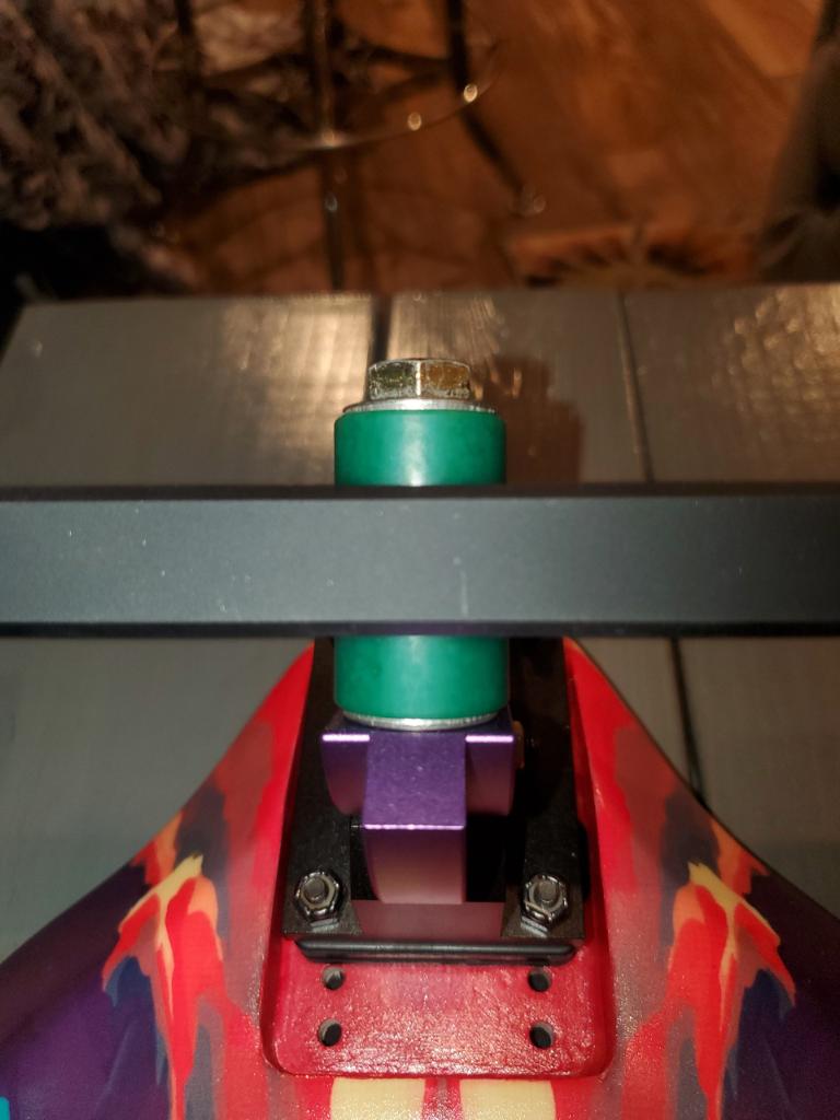 I need to measure the kingpin I have to make sure it’s not too long. It may be possible the kingpin seat is too shallow for this particular pin on the adjustable plate which isn’t allowing me to tighten it fully, although it seems as though the bushings are under the right amount of pressure. As far as I can tell they are as tight as possible. I hand cranked them down until it was just snug and seated against the hanger then added another quarter turn. I’ll try the cupped in the front and add another 93A on the back since that seems to be the troubled area.