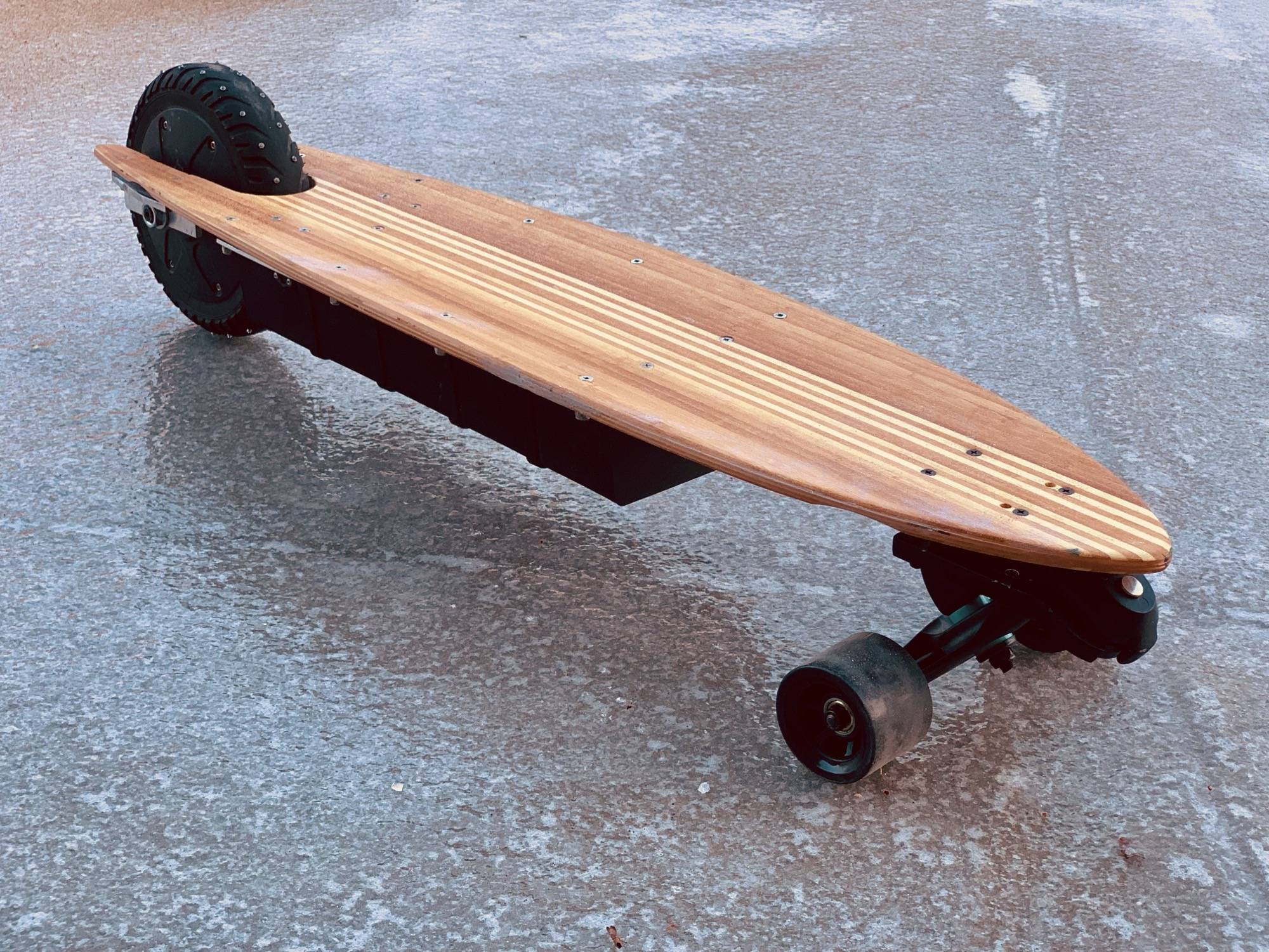 The concept of having a single wheel in the back combined with a surf adapter is not a bad idea at all.