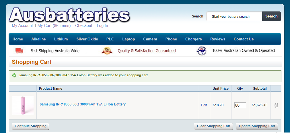 for example nkon sells their 30Q cells for $5 AUD each buy the same cell her eif you dont get a clone or re sleeved chineese cell for $12-$25 a cell