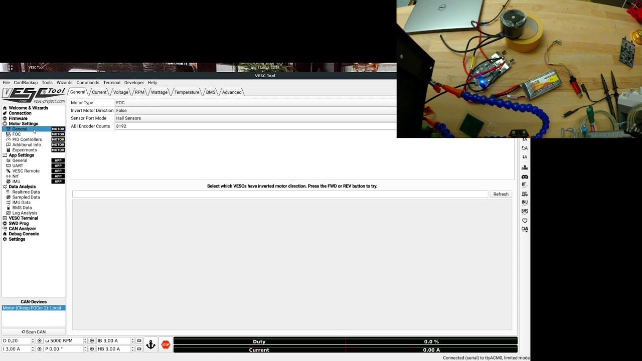 Yest, it is a sensorless motor, running on FOC after an apparently normal detection. I am sorry, I confused the settings…I was actually talking about the duty cycle limits and the Duty Cycle Current Limit start. They were basically set to 100%. I know that should only affect the top end…but weirdly setting them to “sane” values completely got rid of the issue. I’ll keep experimenting and will report back…