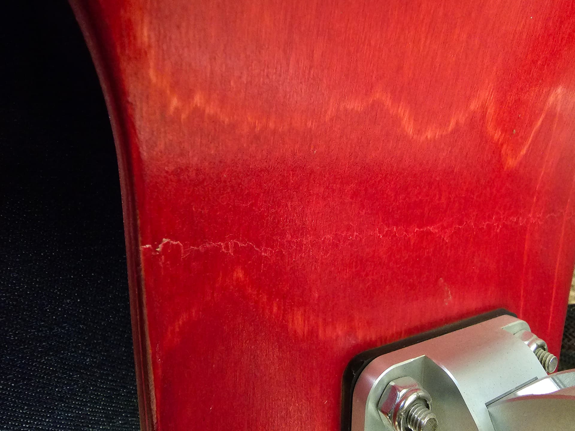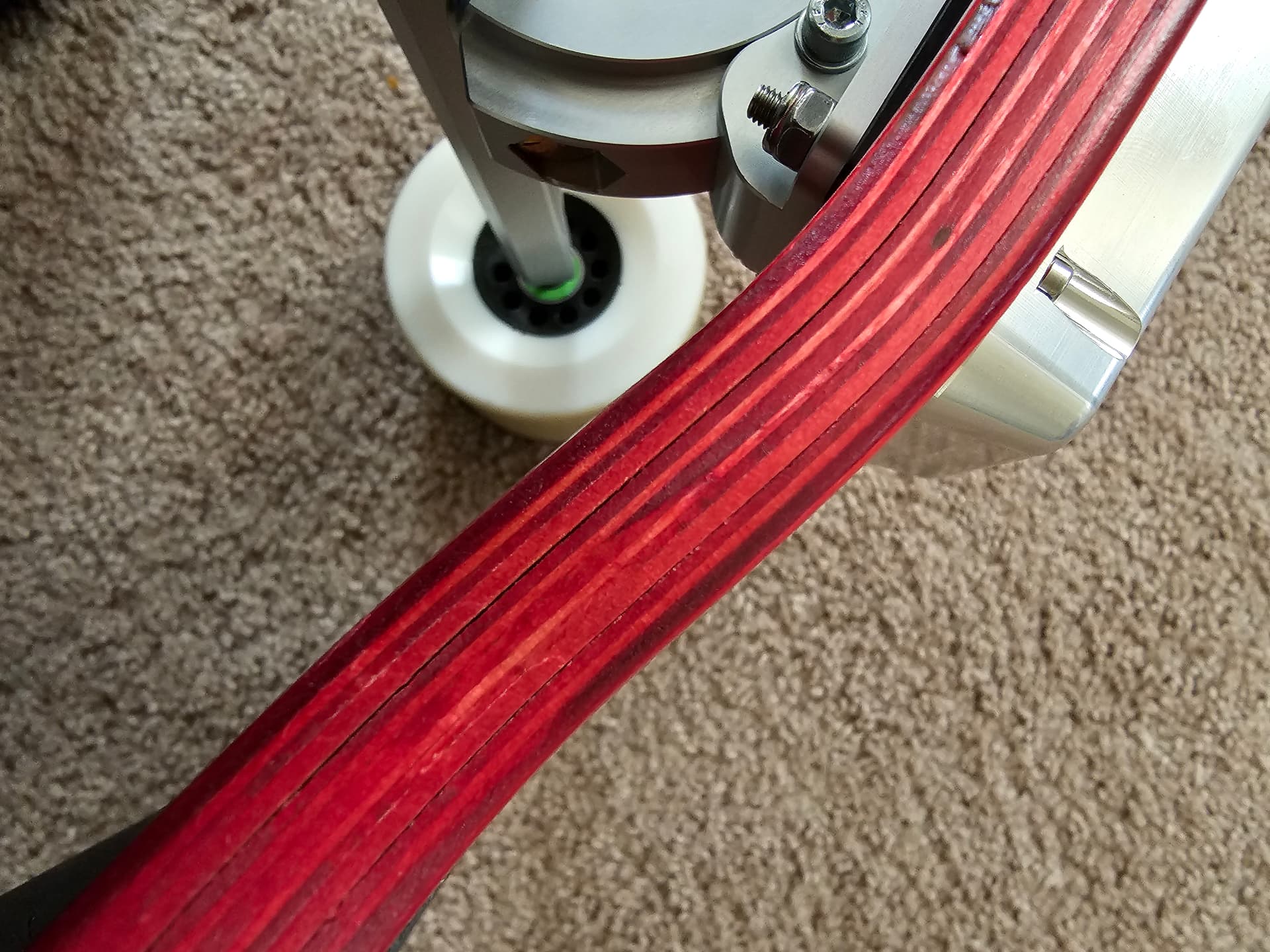 5/5/23. Got the new bushing from Riptide and finally had some good weather to ride. Went on my first ride for about 13 miles everything felt good, and board performed well. Did some general inspection after the first real ride and I immediately noticed the drop down was cracking on both ends and de-laminating. Emailed Defiant.