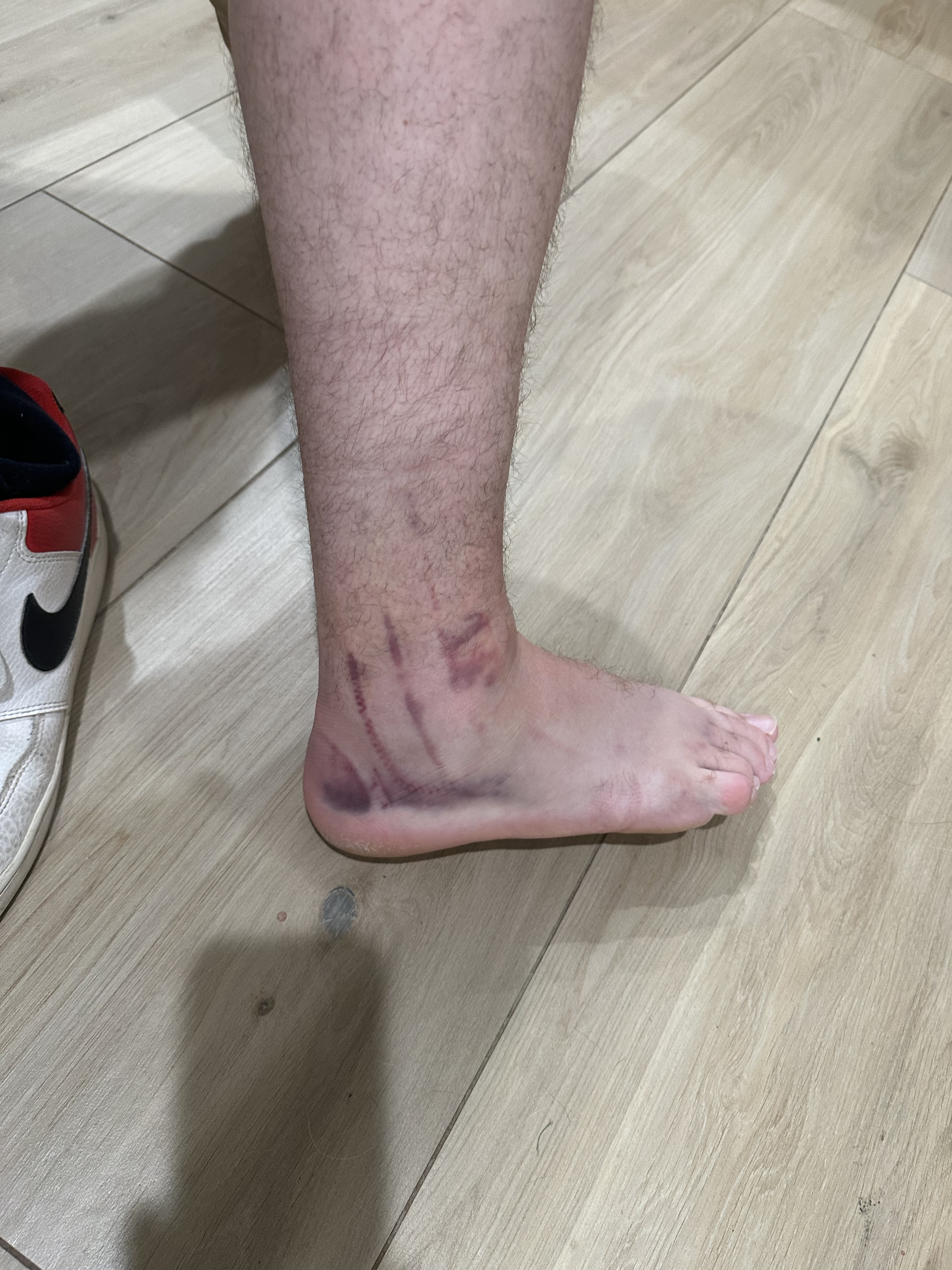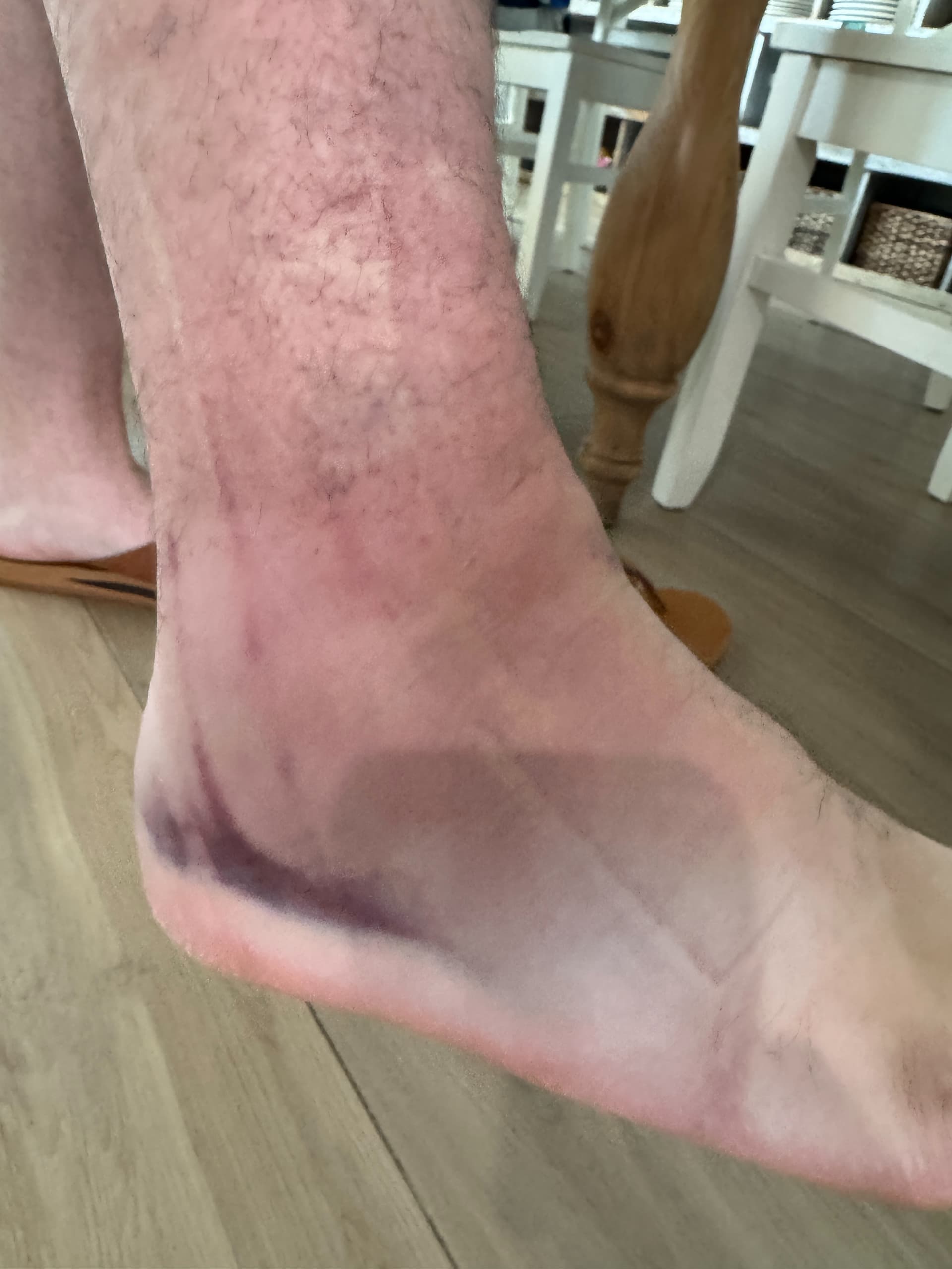 Man that’s gnarly. I’m really hoping it’s just a sprain. I rolled it walking down the stairs, carrying my daughter. Luckily I, and even more importantly my daughter, didn’t tumble down the stairs. I managed to drop straight down.