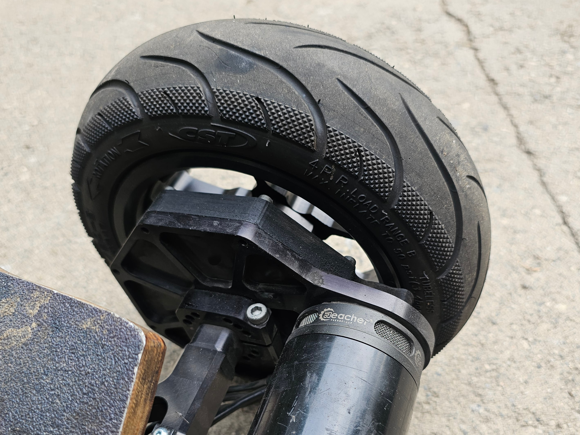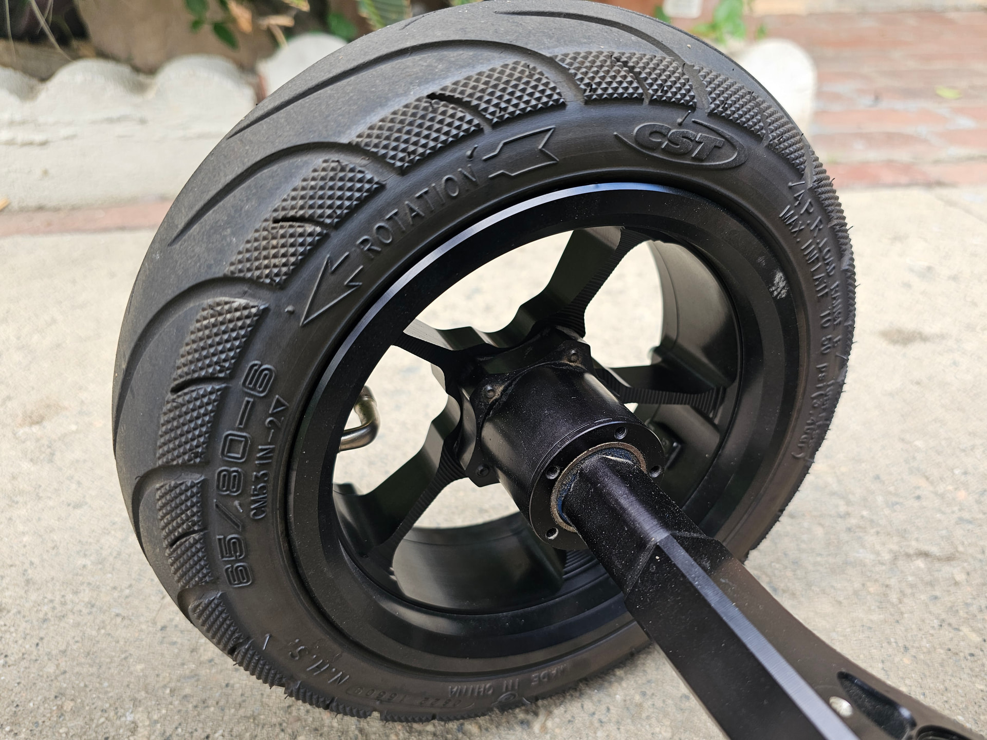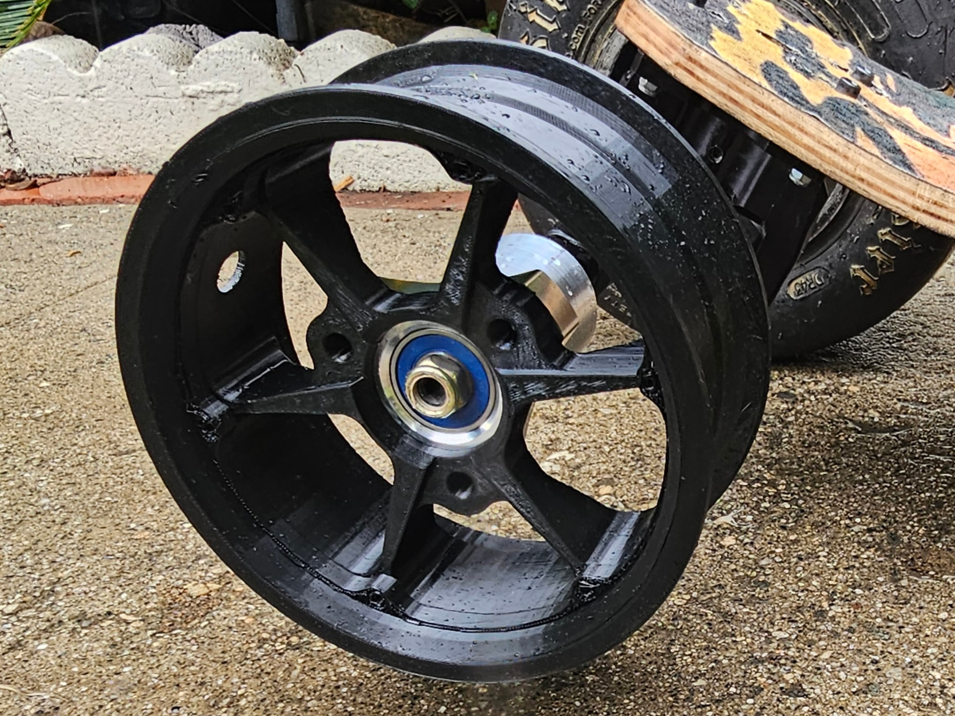 It’s a hub and two piece wheel I made. Designed it to be swappable with my 6 inch wheels. Not sure I’ll make that wheel size but I’ll probably make some 6 inch wheels for sale since 10 inch tires are just so good for street. To make it more universal I think I’ll do go kart bolt pattern. That also works with my gear drive for bigger tires.