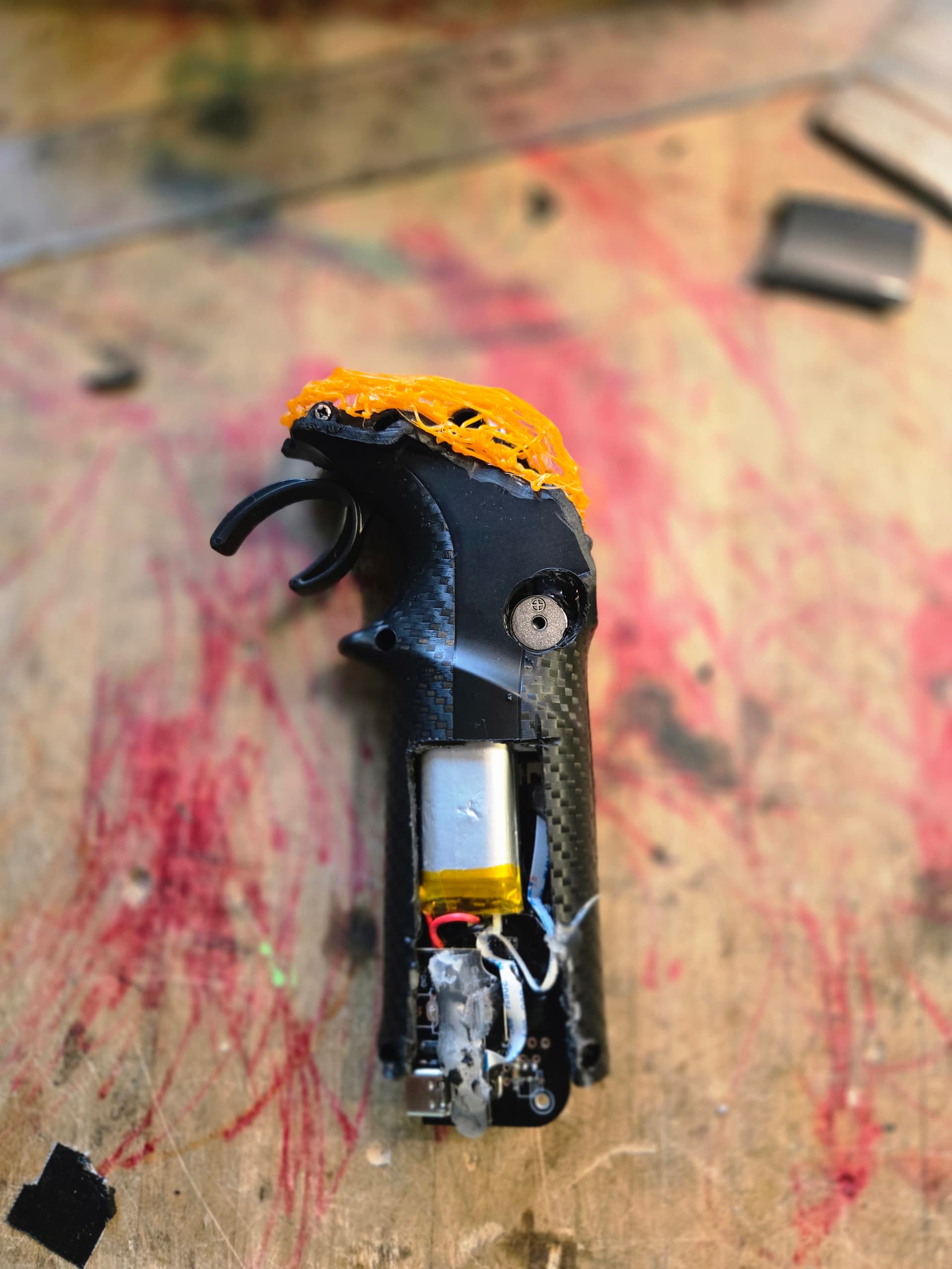 The part that connects to the potentiometer is just a 3 pin JST. So technically the shape can be somewhat like what i’m holding in the photo, of course adding some sort of way to charge a battery of sorts.