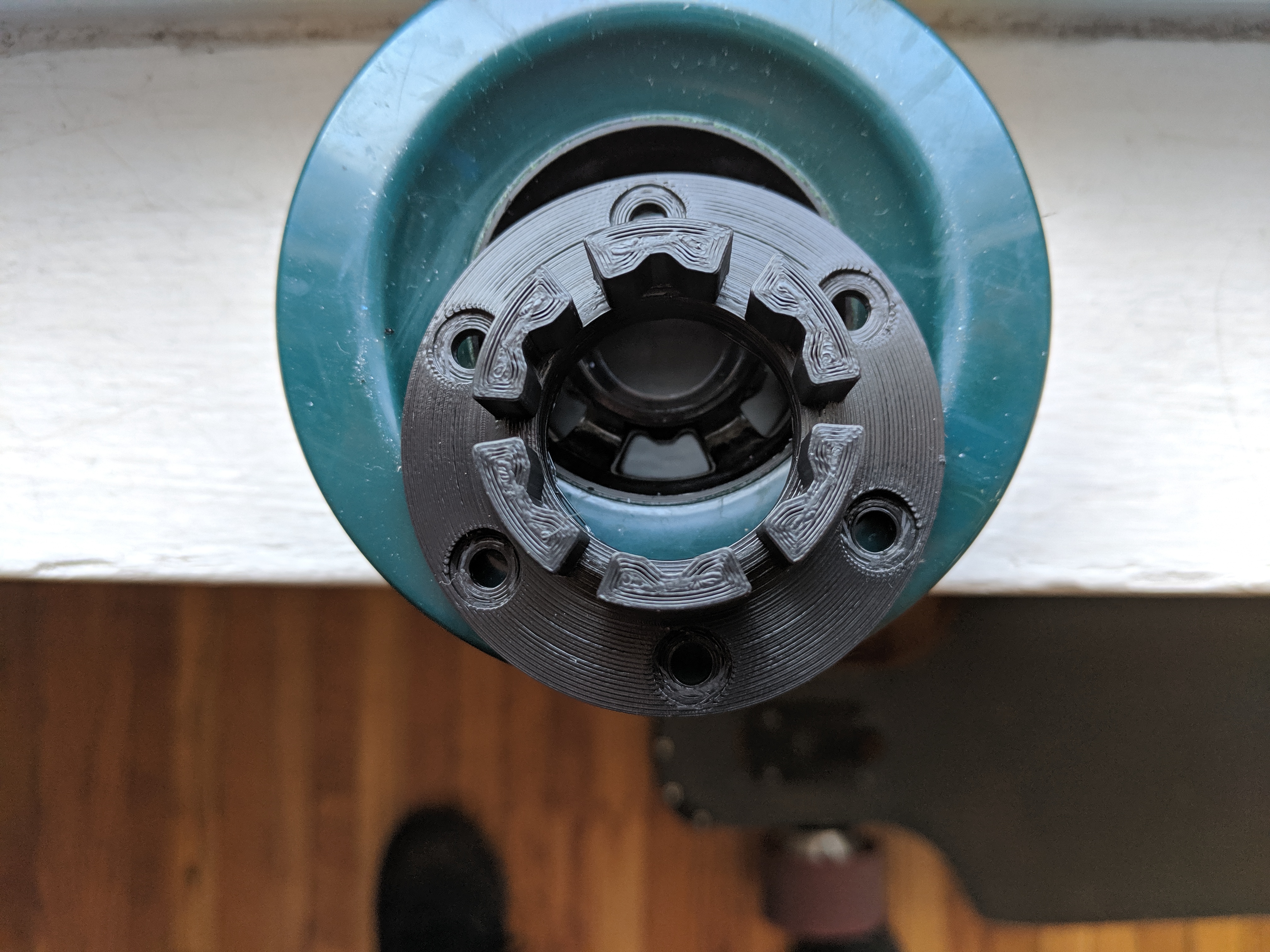 I have to make one small change and then its final! They fit beautifully on @Tonkatron board and keep the inside bearing on the wheel against the nut on the axel and we have ridden the board with them on. I just have to make the spokes 4mm taller.