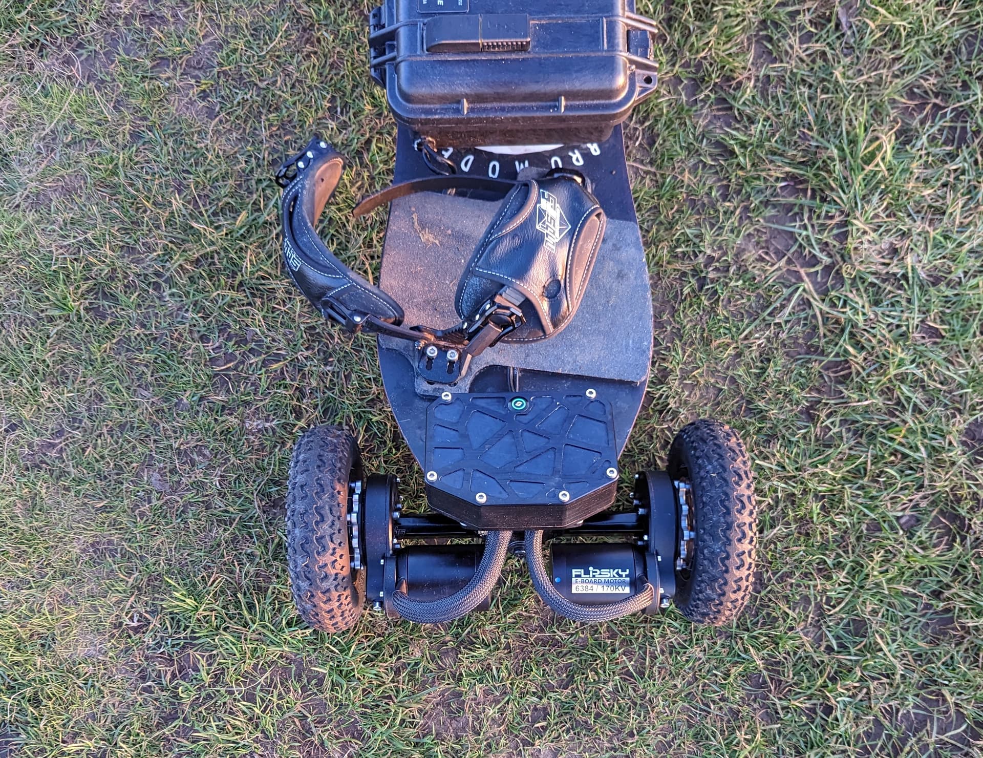 However, I have managed to break the truck clamp, as you can see it’s started to come loose from the hanger. I think this happened because the fit onto the hanger was too loose, I designed a 0.1mm clearance fit, and thus all the force goes through the 4 grub screws. I think I underestimated how much force goes through the truck clamp, those motors are heavy and that results in lots of torque on the truck clamp when the motor is bouncing around whilst riding on rough terrain and jumping.