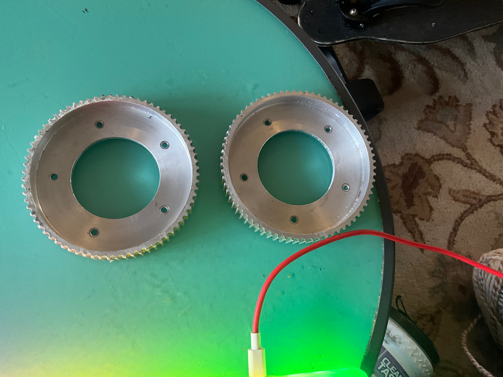 Description-72 Tooth Aluminum Pulley. MBS Rockstar II Bolt pattern. I didn’t use them for very long before I switched to chain drive. They have a little wear and tear, but are otherwise in great shape.