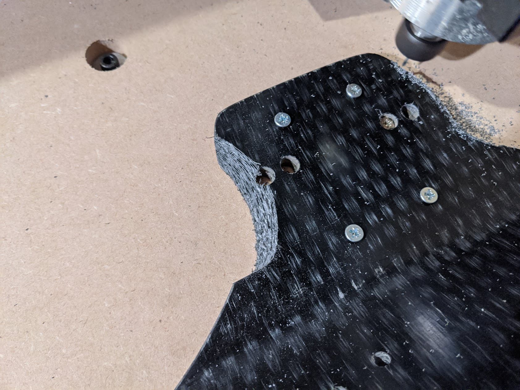I only had a single small carbon diamond endmill (designed for cutting composites) so i knew i only had one shot and if i broke the bit it would be game over.