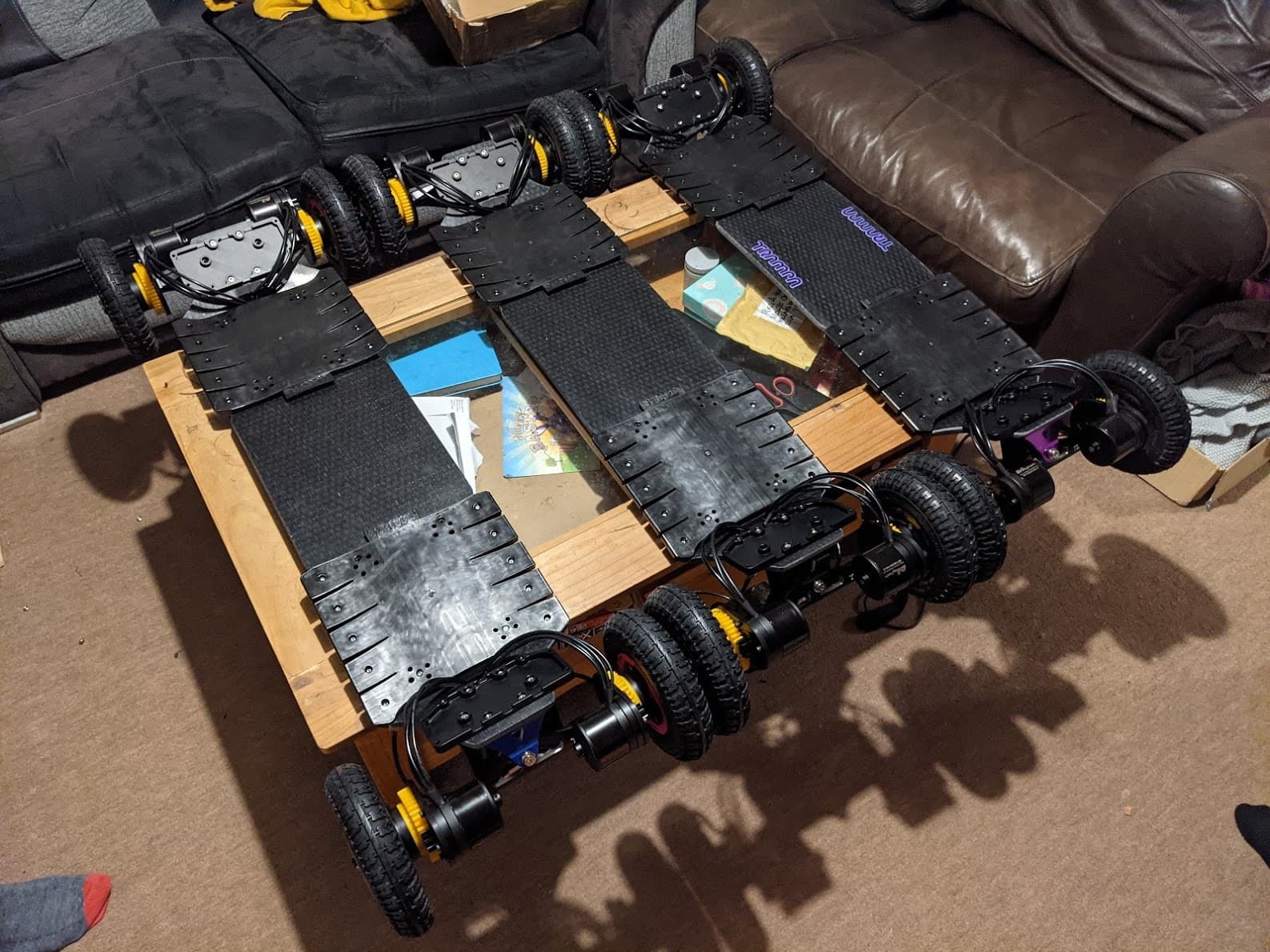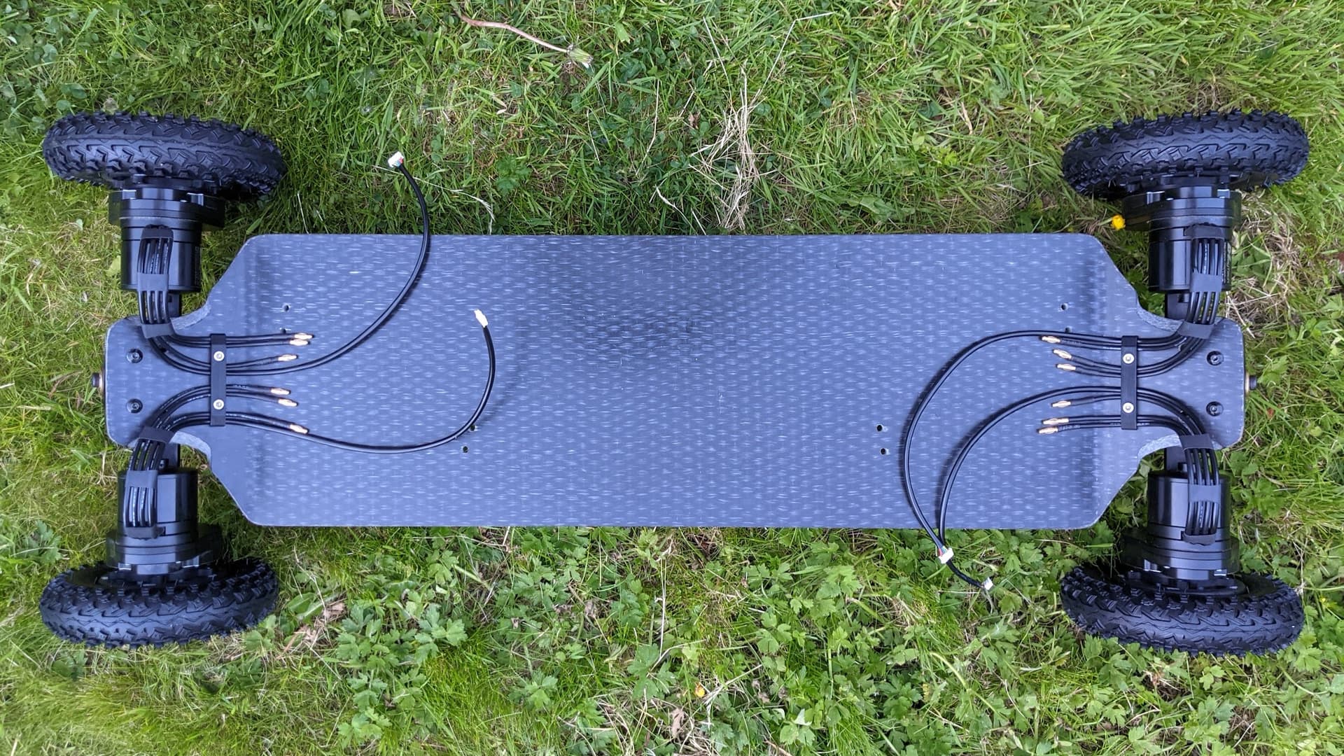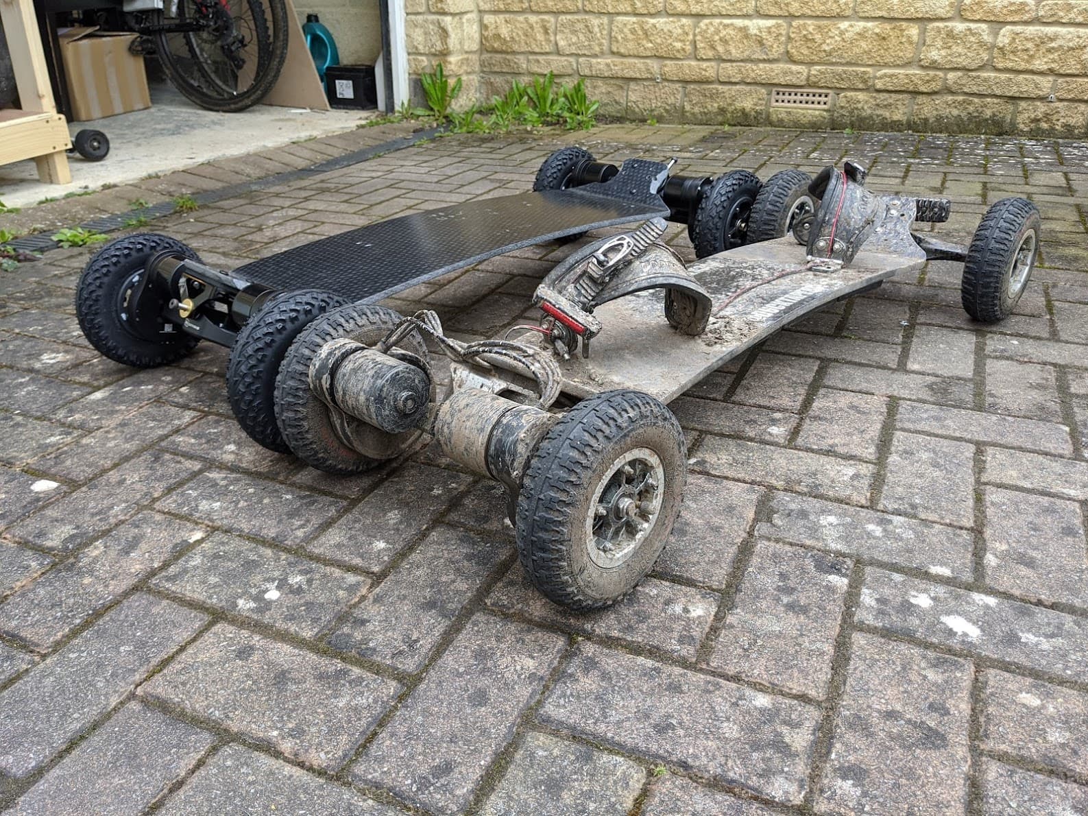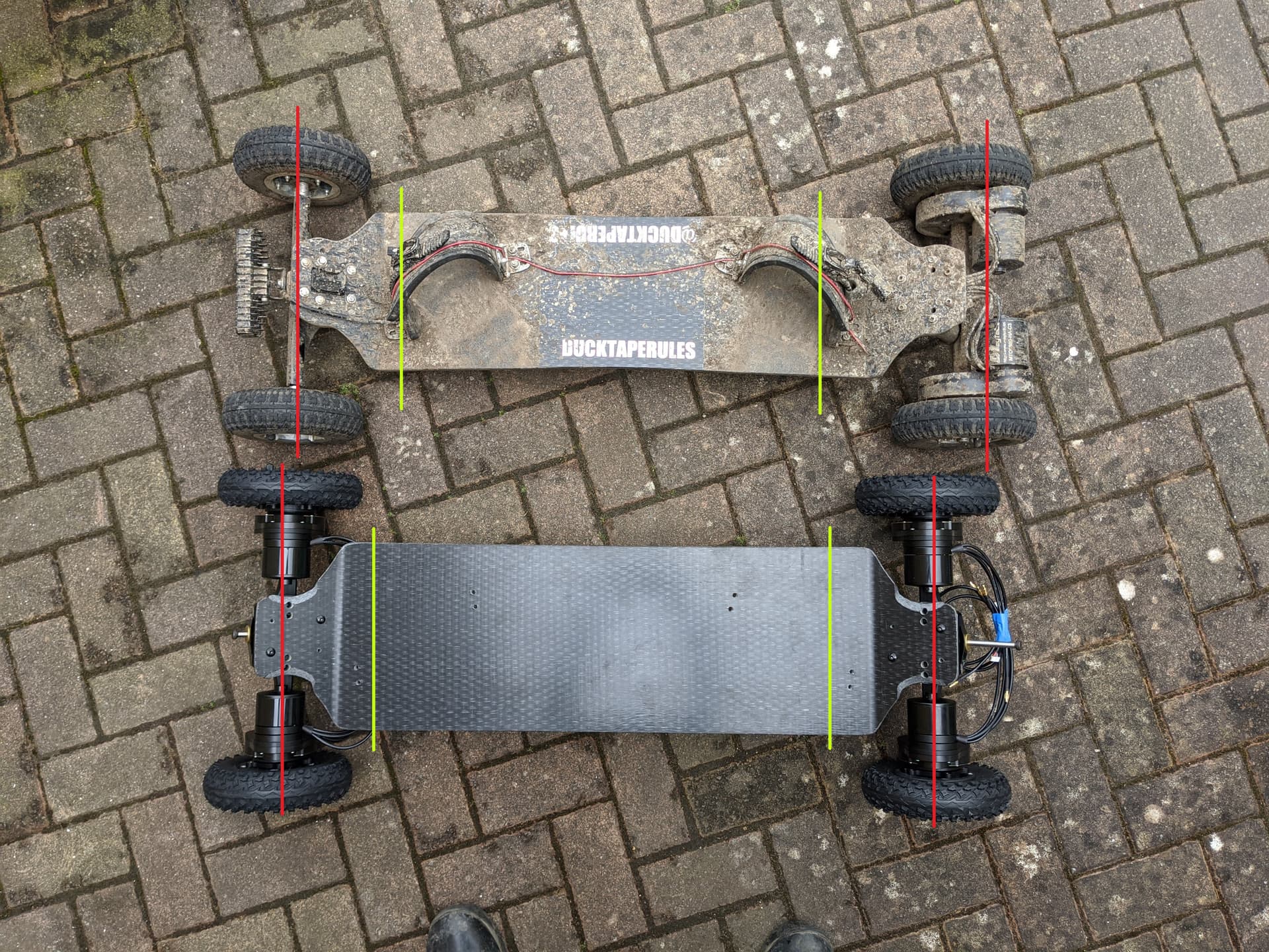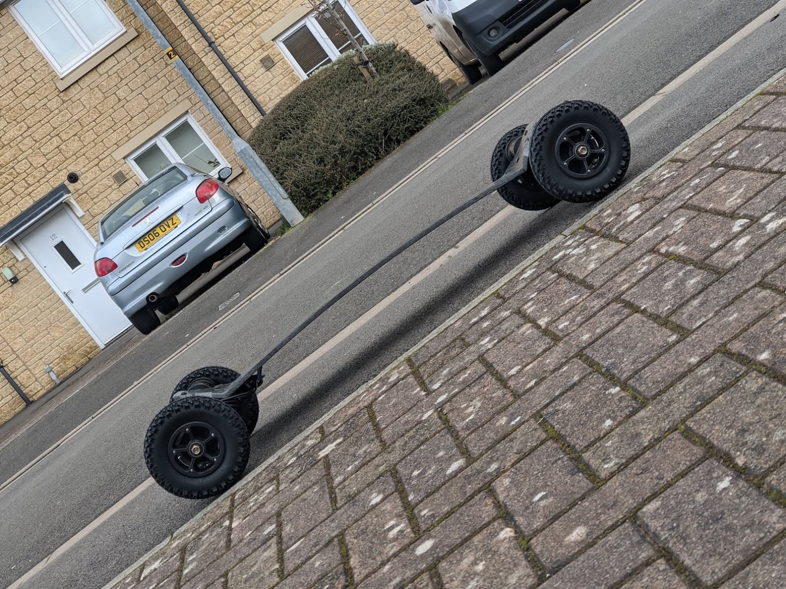 Start to realise how wide this is compared to my old board. With the street tread Its kinda got that buggy look with all the wheels right out on the corners
