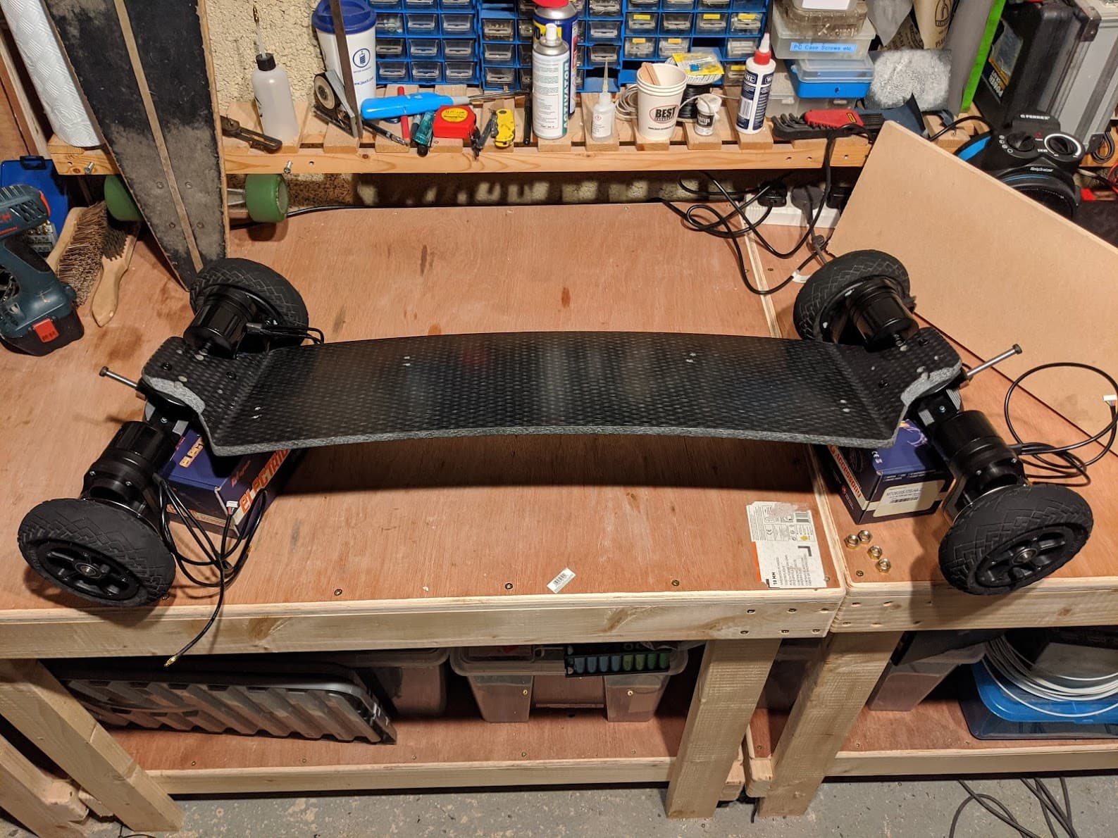 kind of arrived at this starting point with a plan to finish the top of the design when i had settled on a battery size. Also thought about pulling the center of the board back in to the standard trampa width just to save a little on the weight.