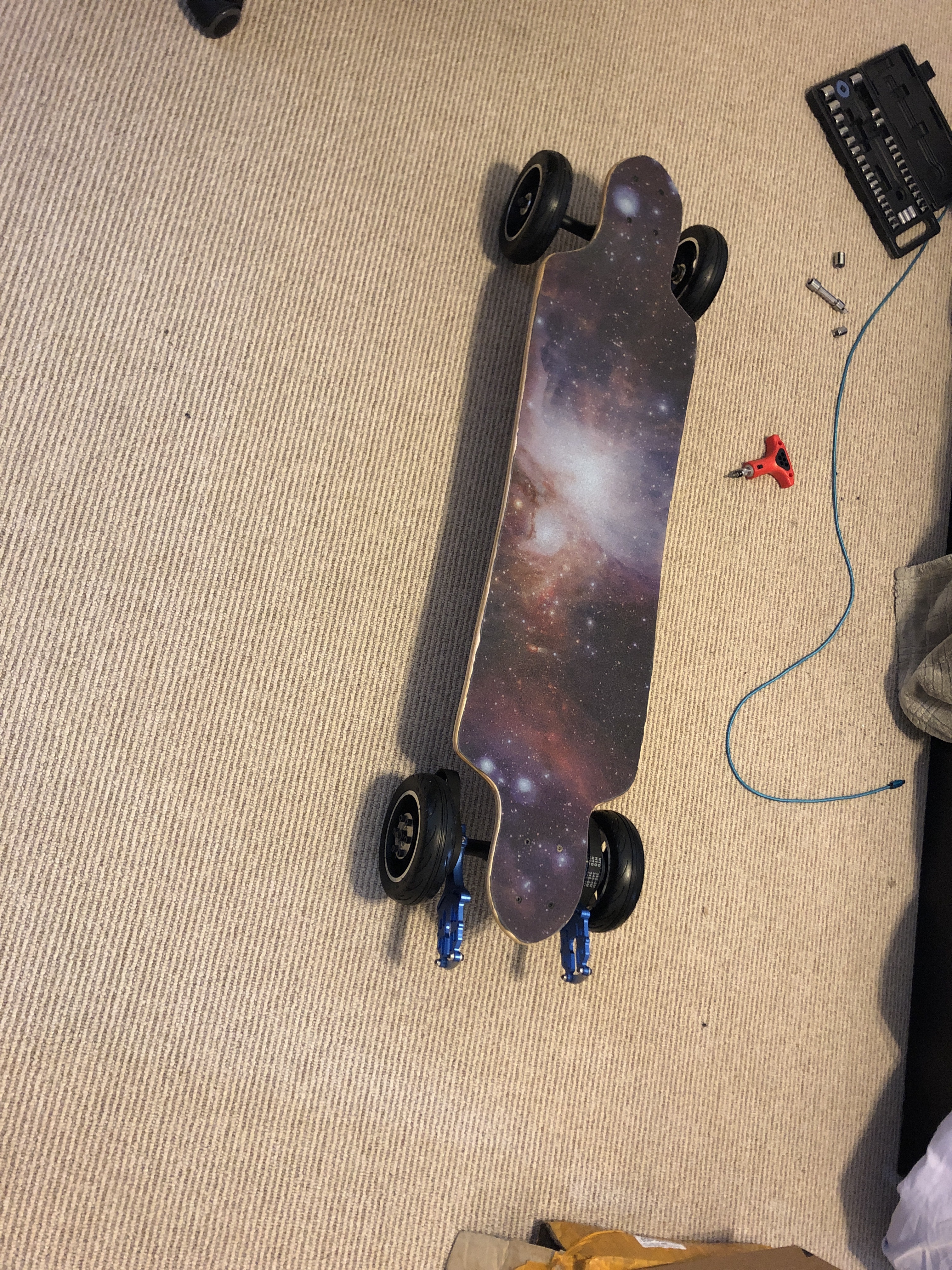 It turns out the mcu shorted somehow so I am currently in a process of returning it for a refund through PayPal, as much as I rode, the trucks and wheels held out great, super stable with stock bushings, however, the trucks won’t fit my 6380 turnigy motors, on the same side.