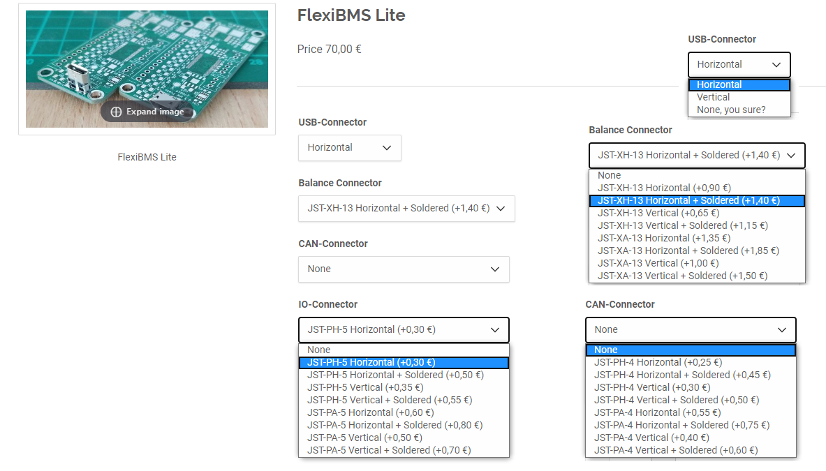 That’s why this was my first proposal for the product page, so you could choose if you wanted to have the connectors soldered by me before shipping. Battery and charger connections need to be done by the customer. USB-connector will be soldered without extra cost.