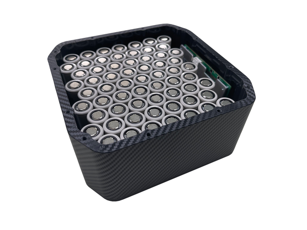 in a brick format a 12S7P (21700 cell) would be this big (mechanical XY-dimensions with the pack marked), height would be 76mm. Could drop one parallel cell to squeeze the Y dimension 22mm down from the 169.1mm to 147.1mm for 12S6P