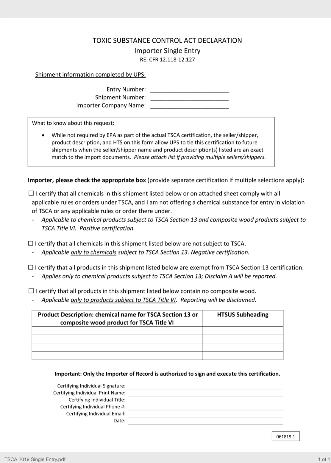Tsca form? Toxic substance control act… has anyone had to fill this out ?